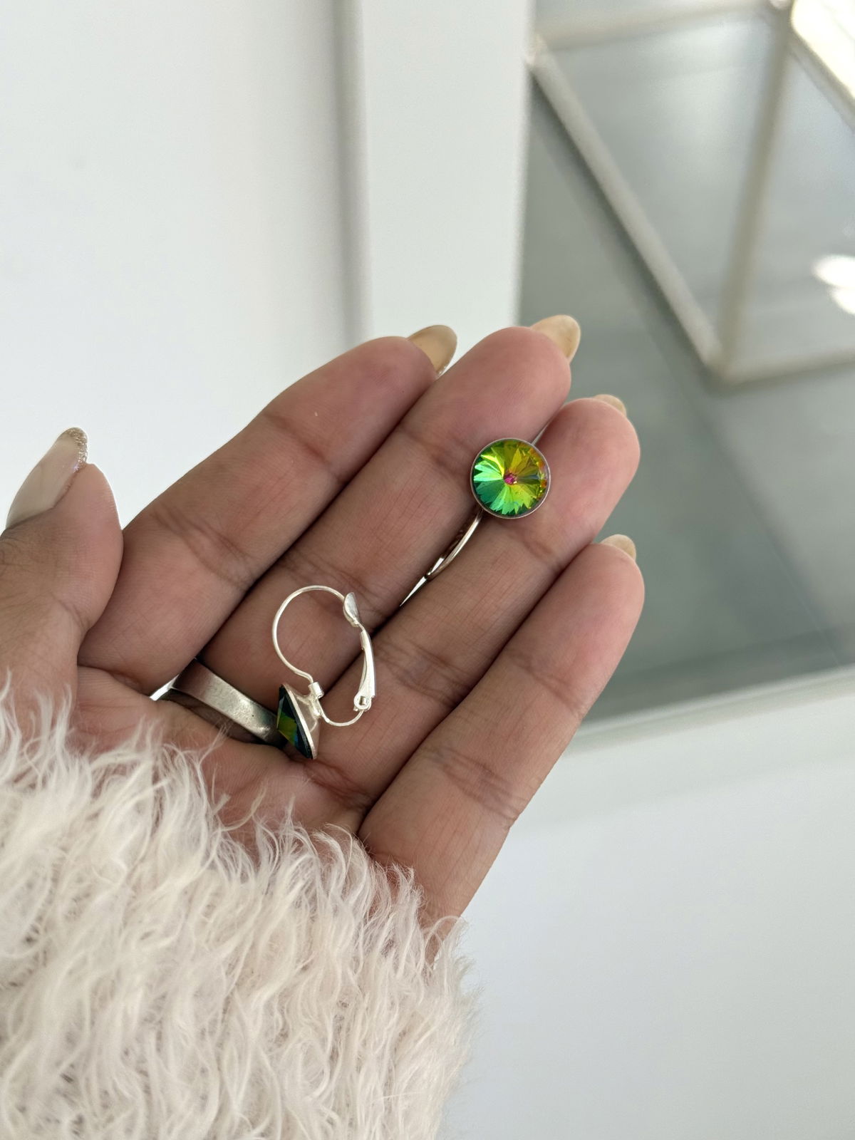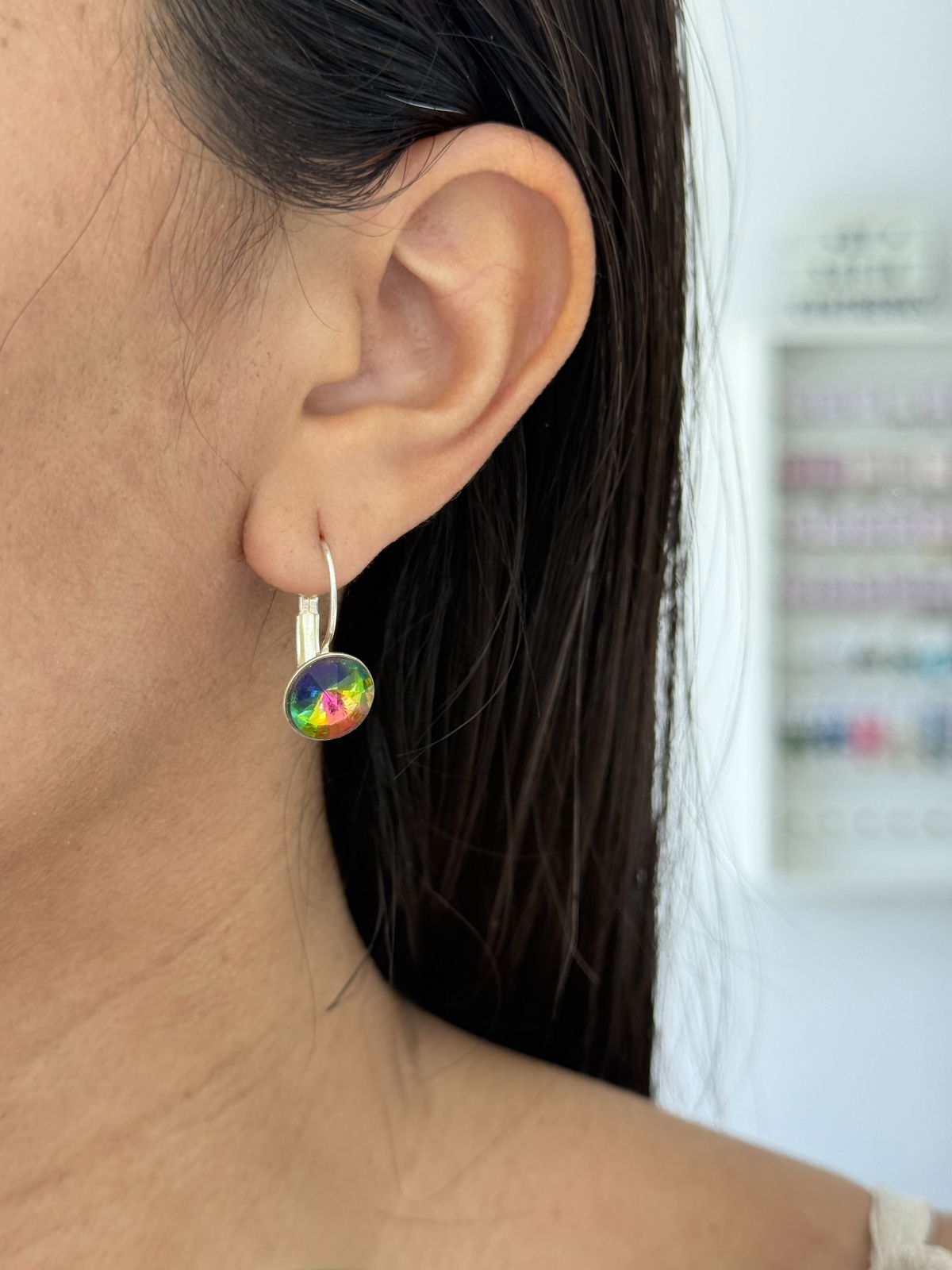 Aro cierre brisura 2cm con cúbics cuarzo místico plata.
