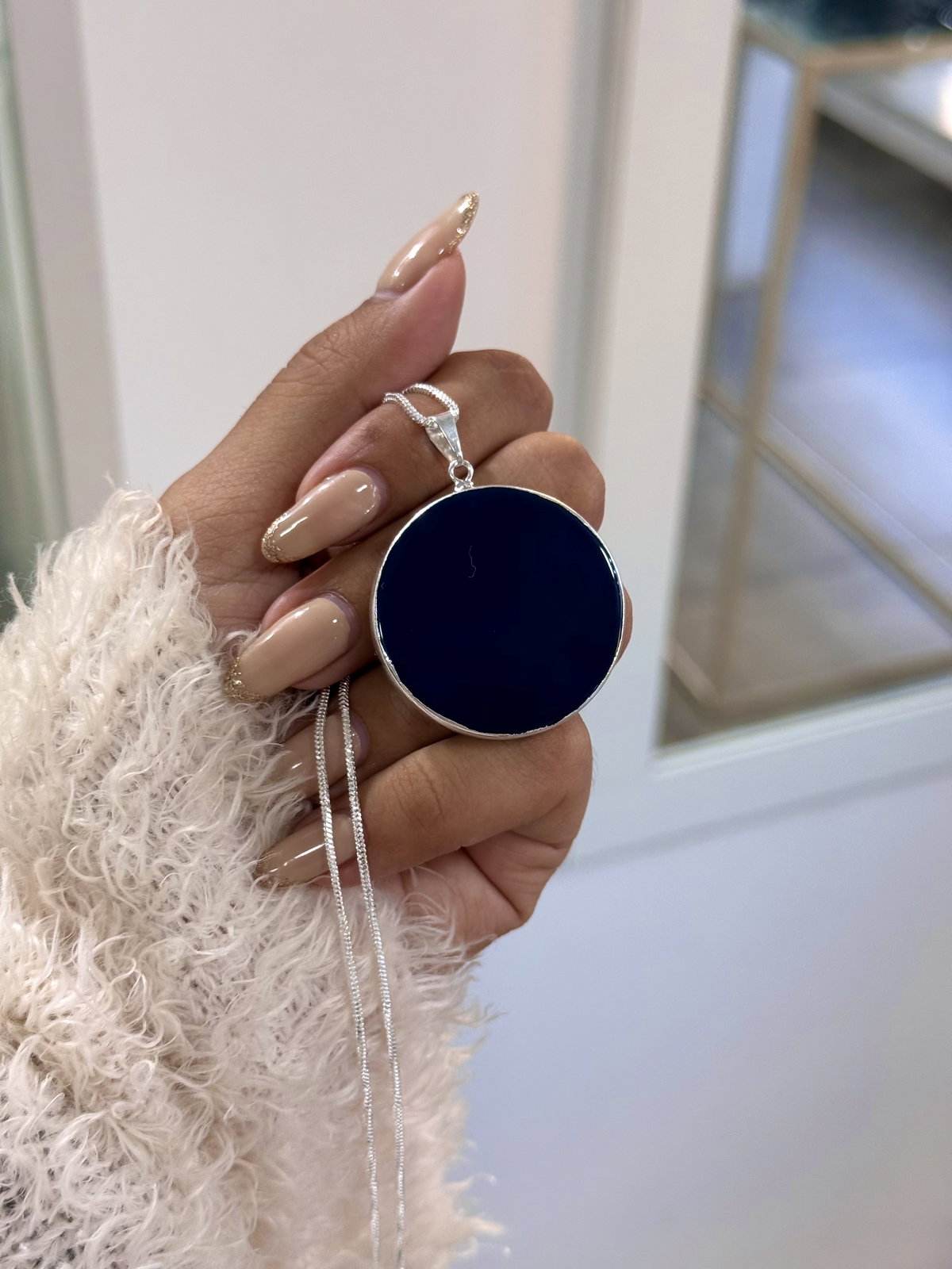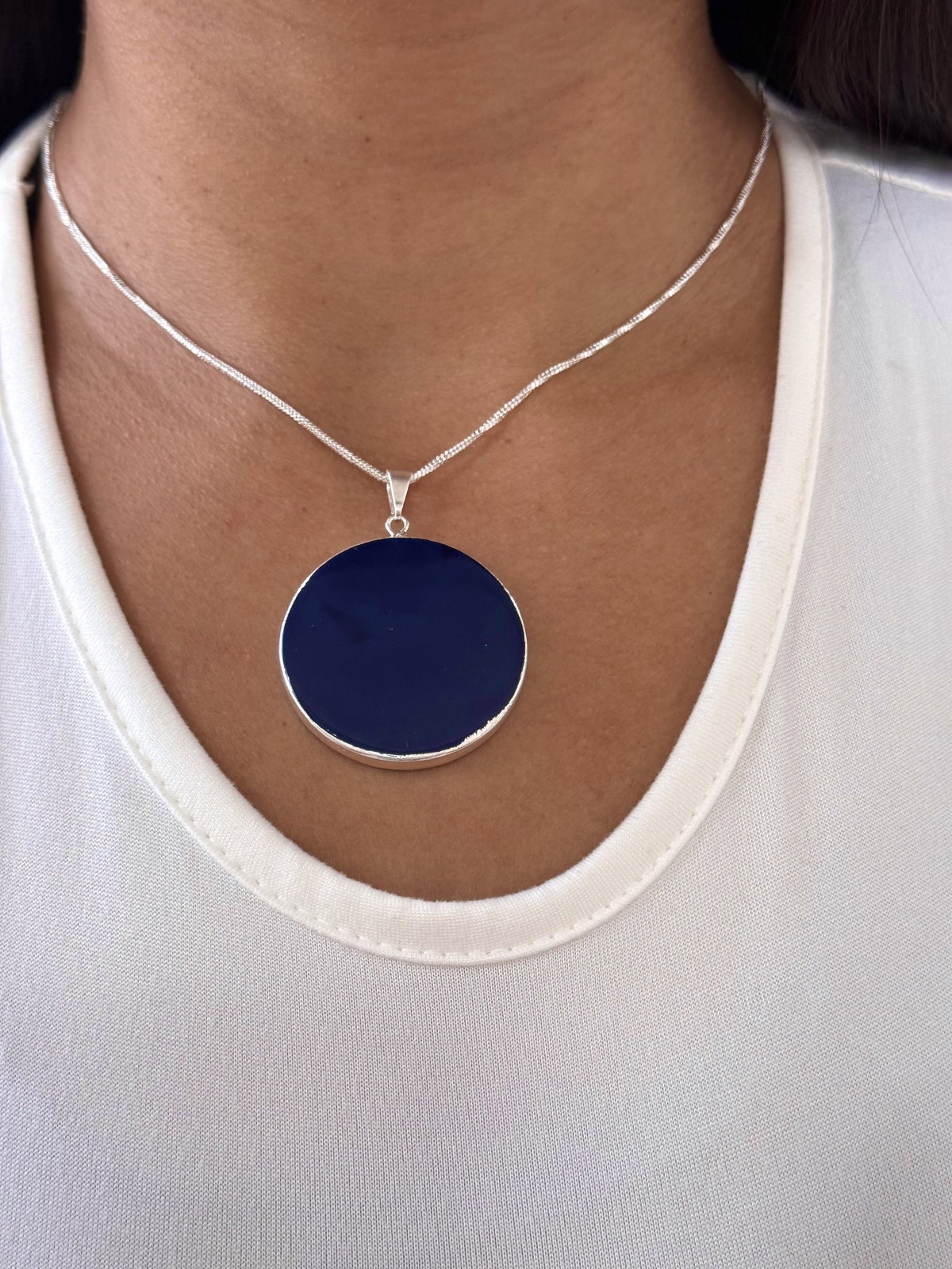 Conjunto acero blanco con piedra azul ágata natural.