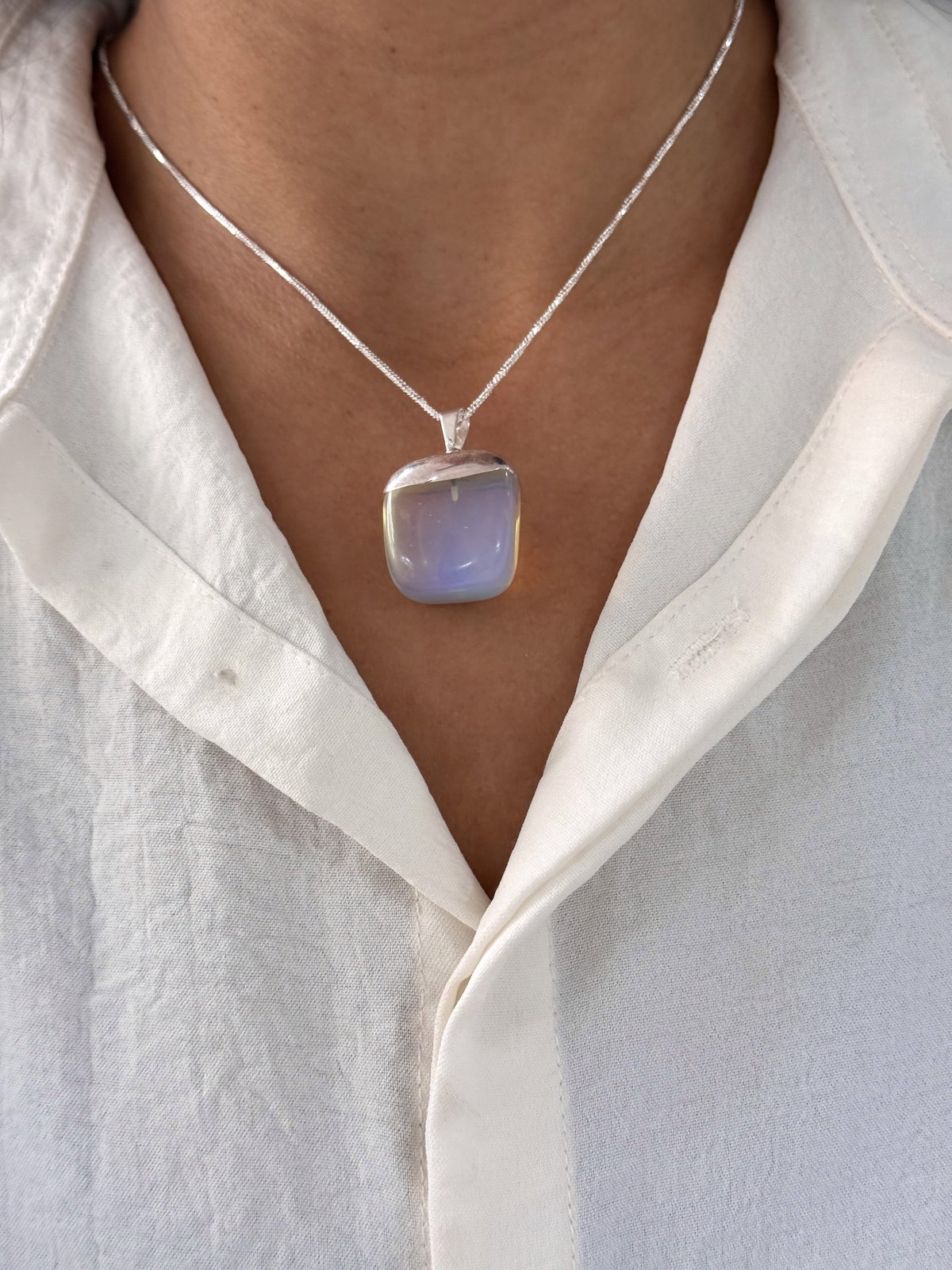 Conjunto cadena acero blanco y dije piedra de la luna.