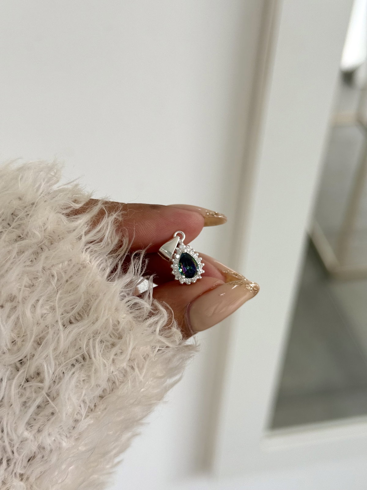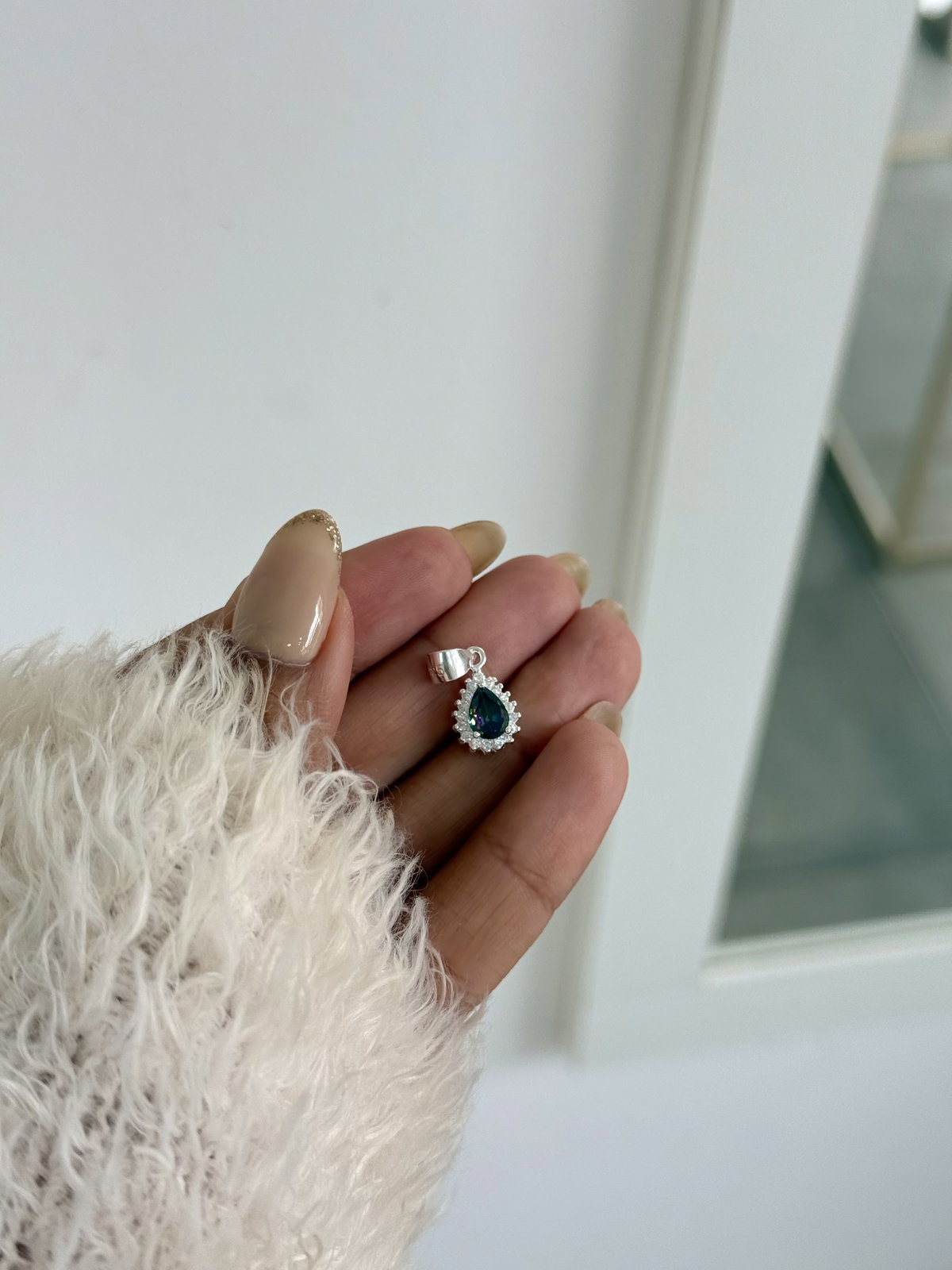 Dije 1,5cm gota con micro cristales y cuarzo místico plata925.