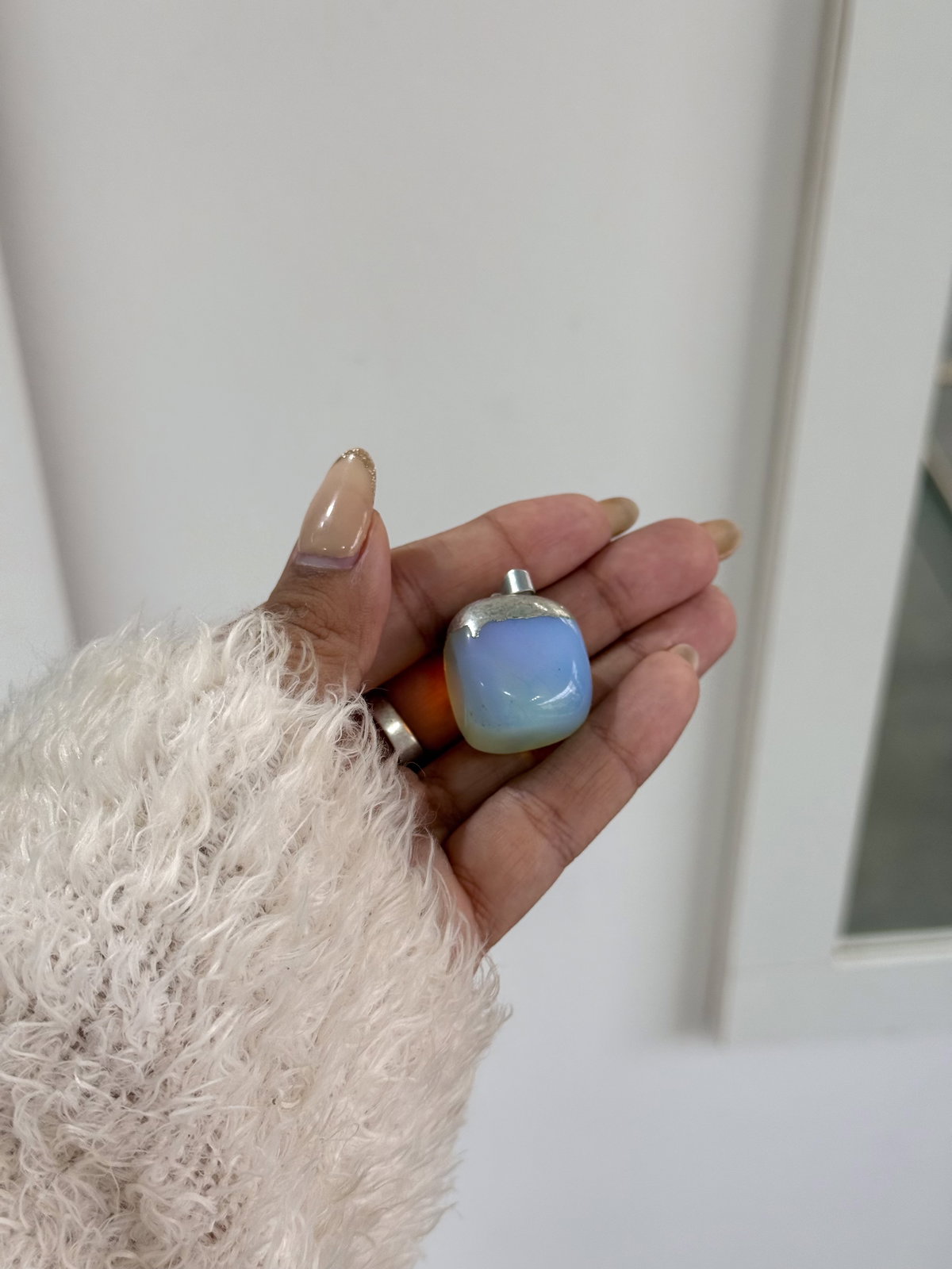 Dije piedra de la luna 2cm baño de plata.