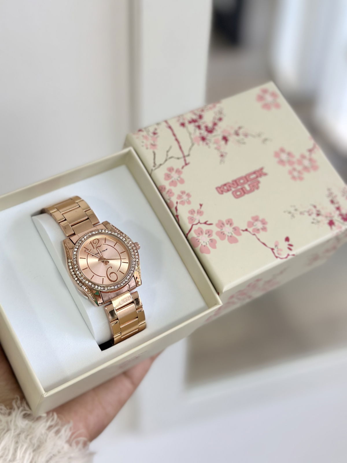 Reloj metal con strass, resistente a salpicaduras, knock out.