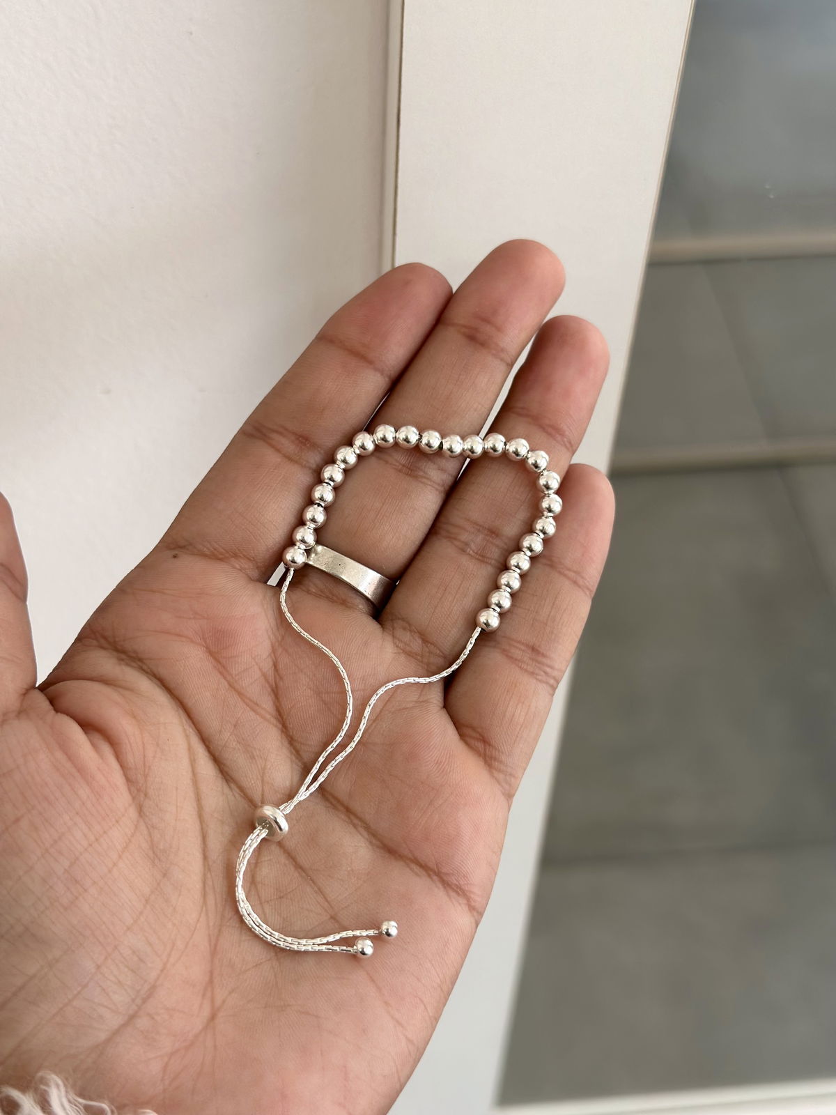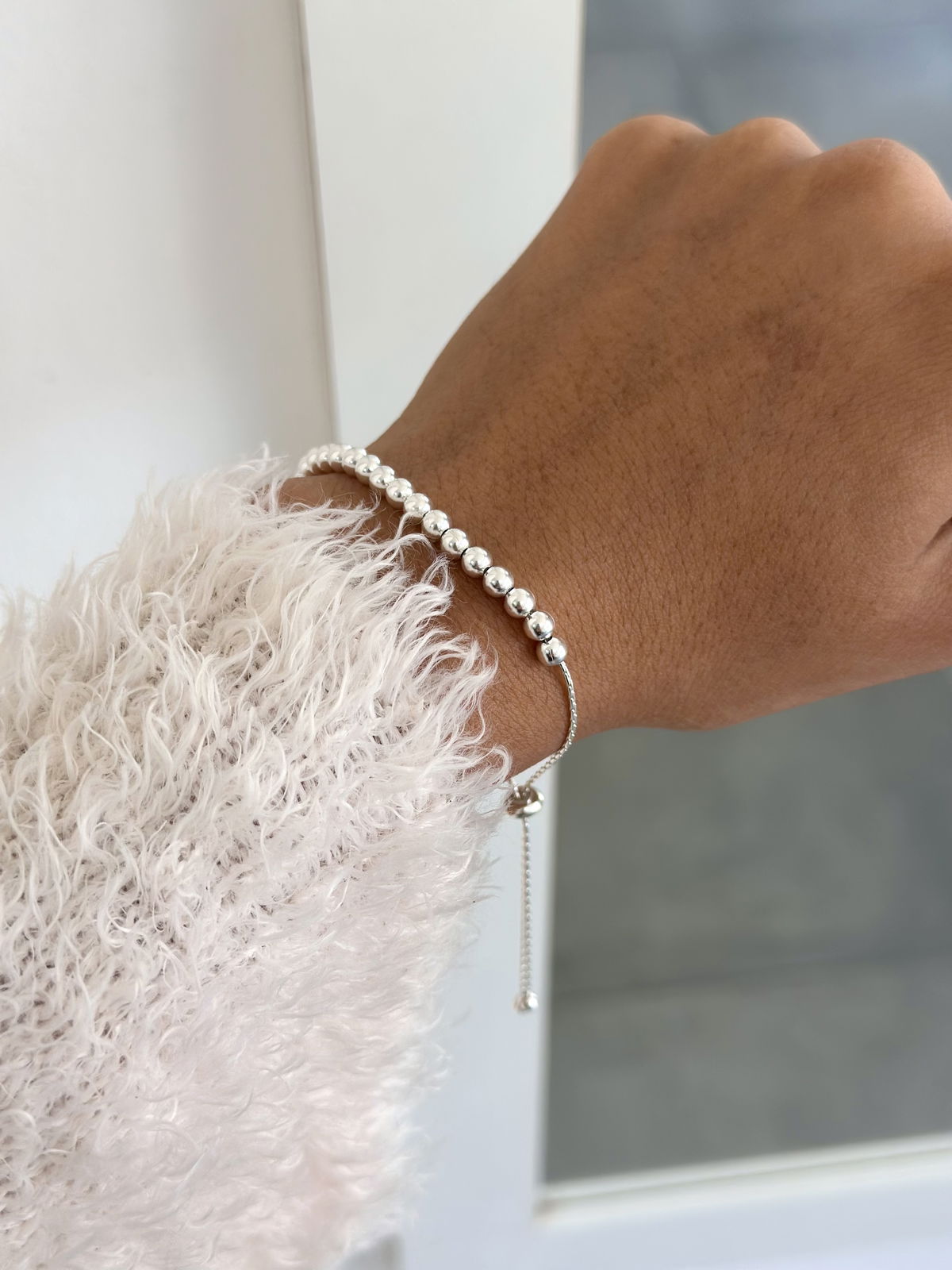 Pulsera corbatero ajustable plata925 con bolitas.