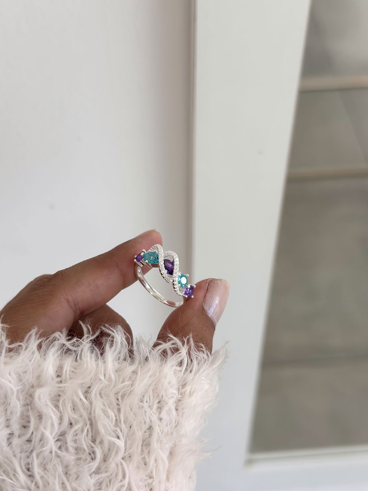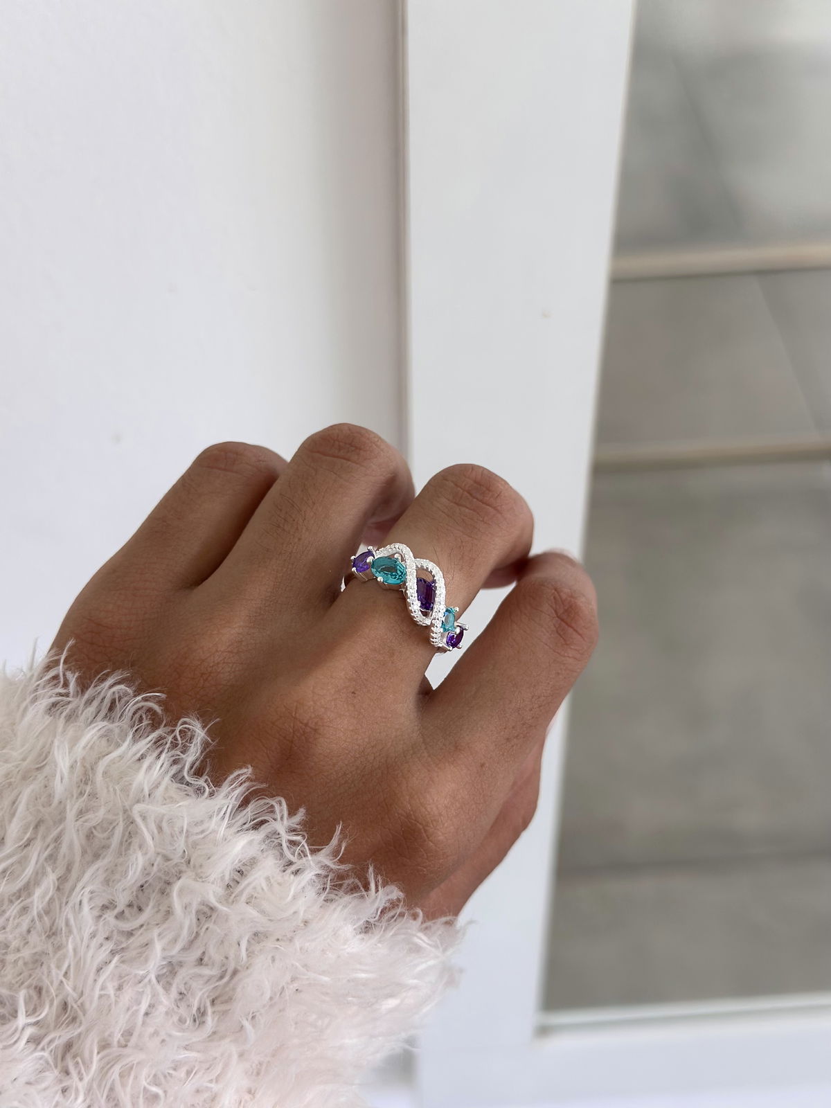 Anillo cúbics colores con cristales cruzados plata925.