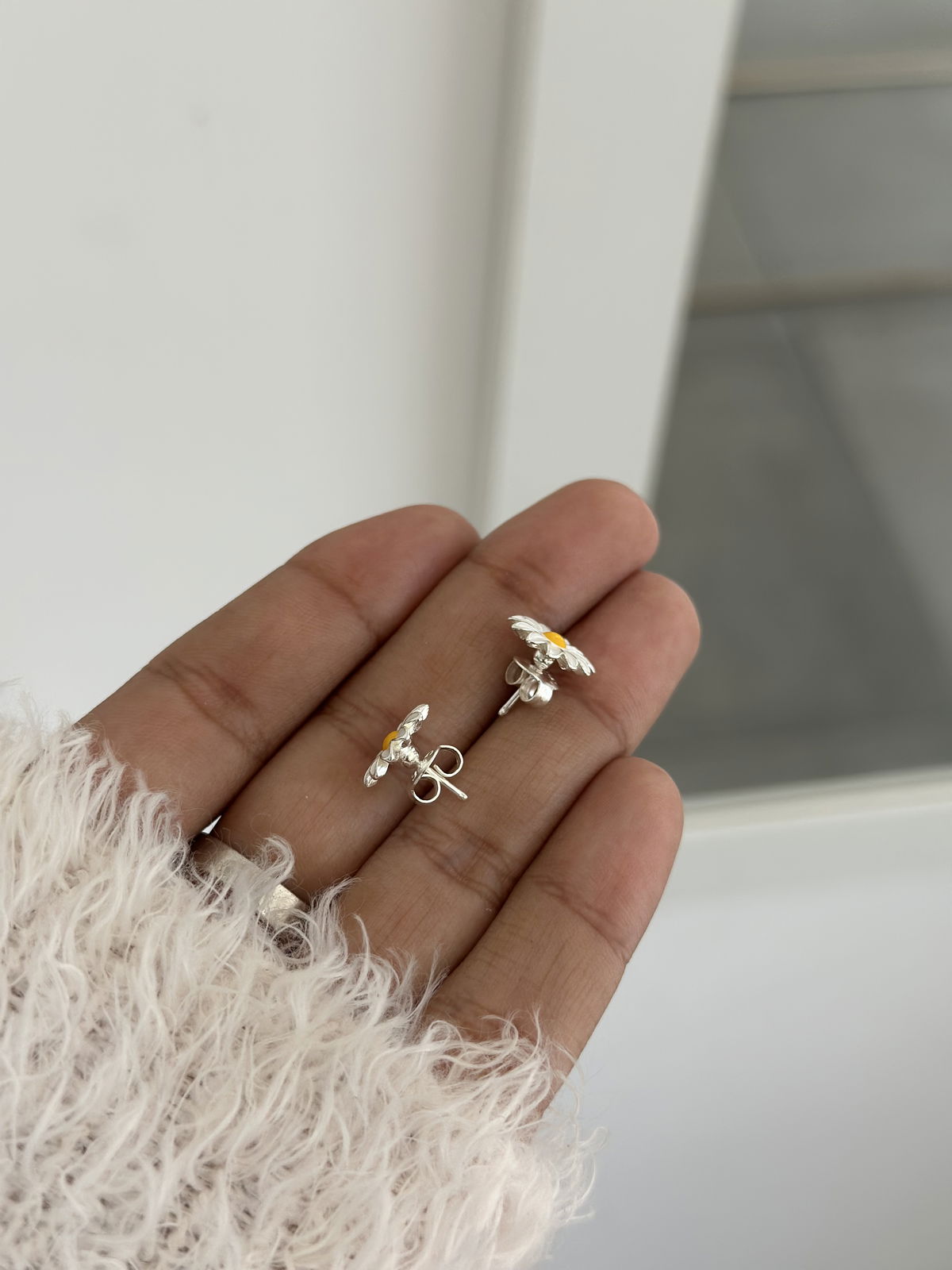 Aro pasante margarita esmaltado plata925.