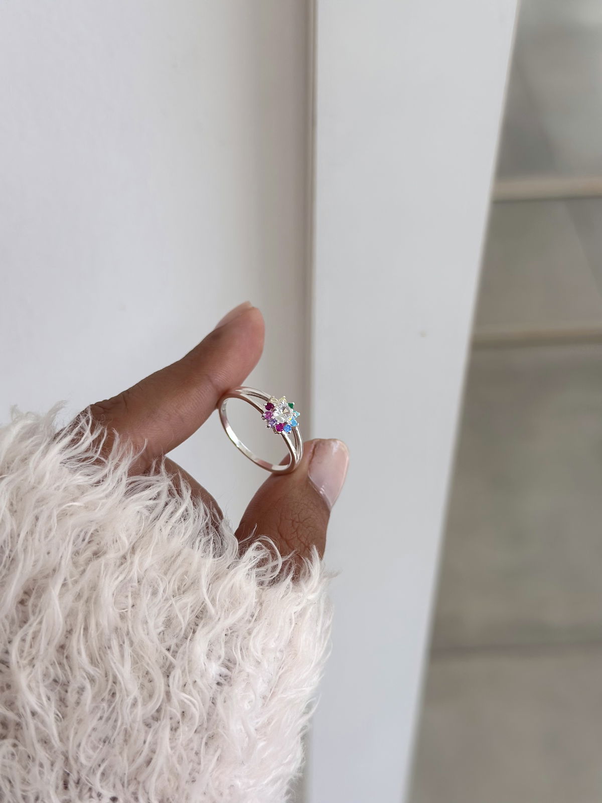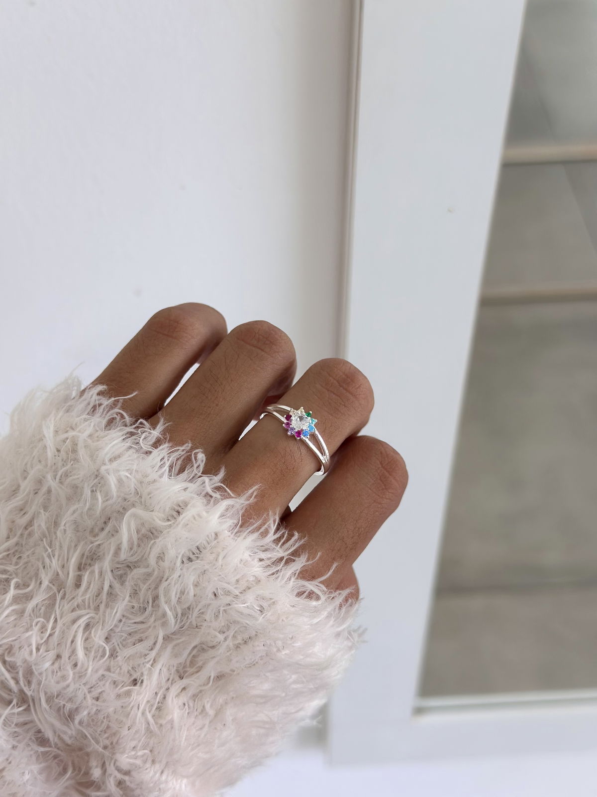 Anillo flor con cubics de colores plata925, 17mm.