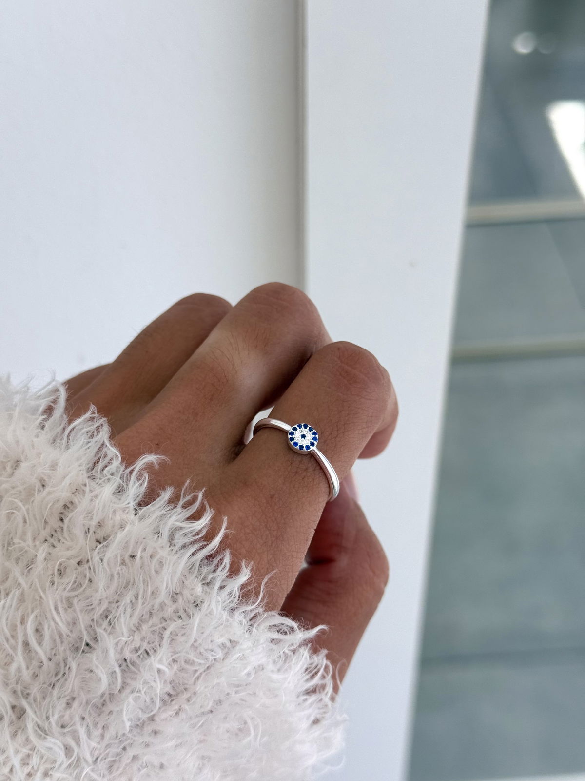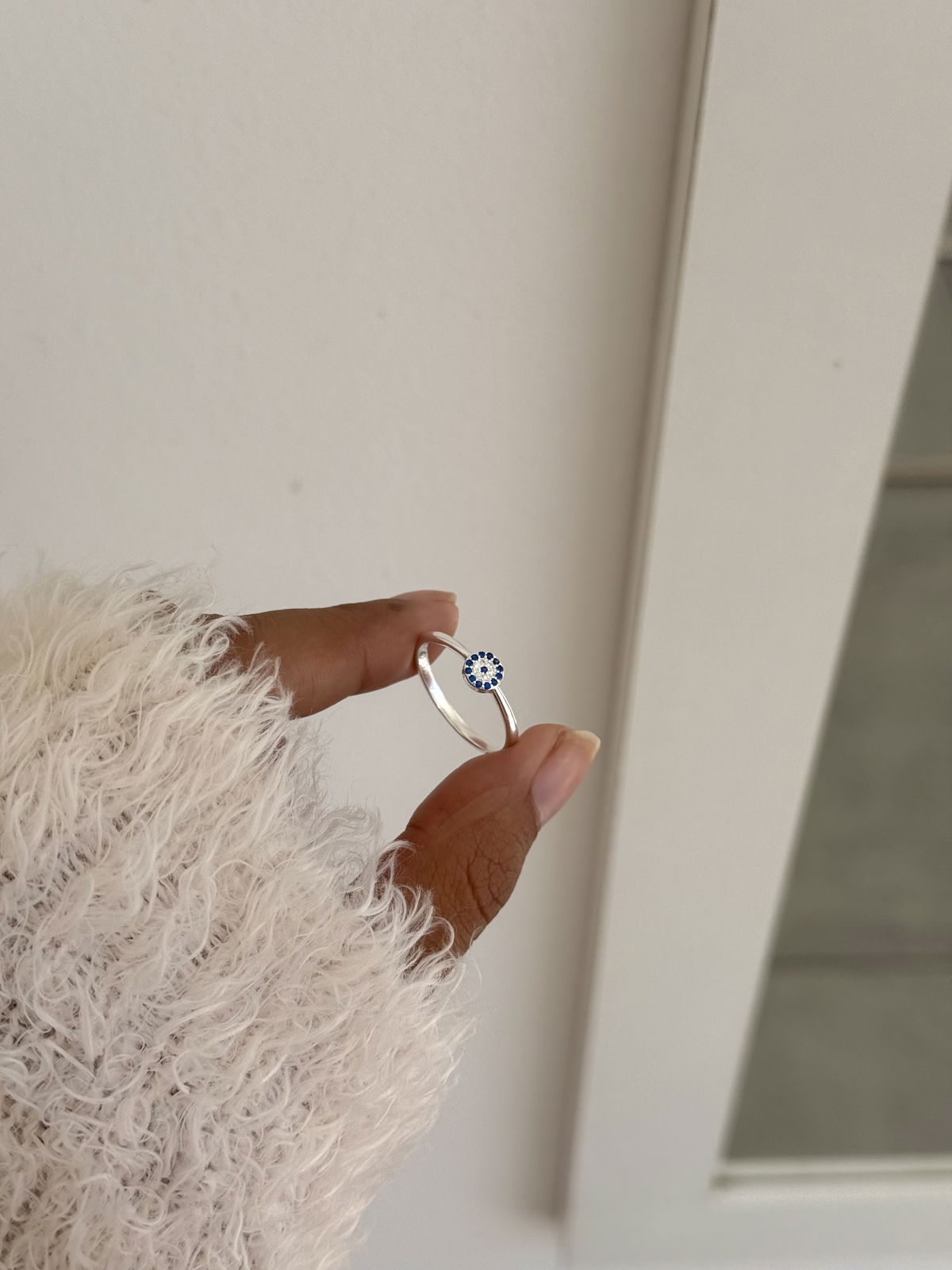 Anillo ojito turco con cristales plata925, 18mm.
