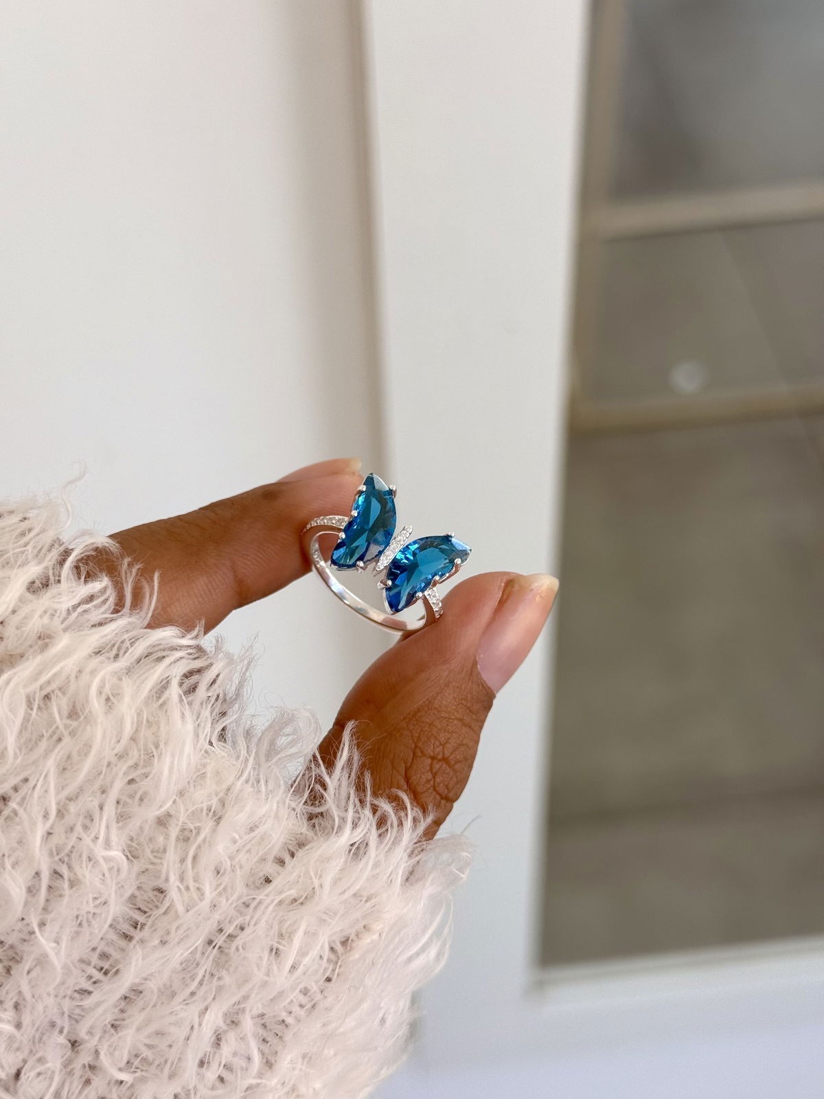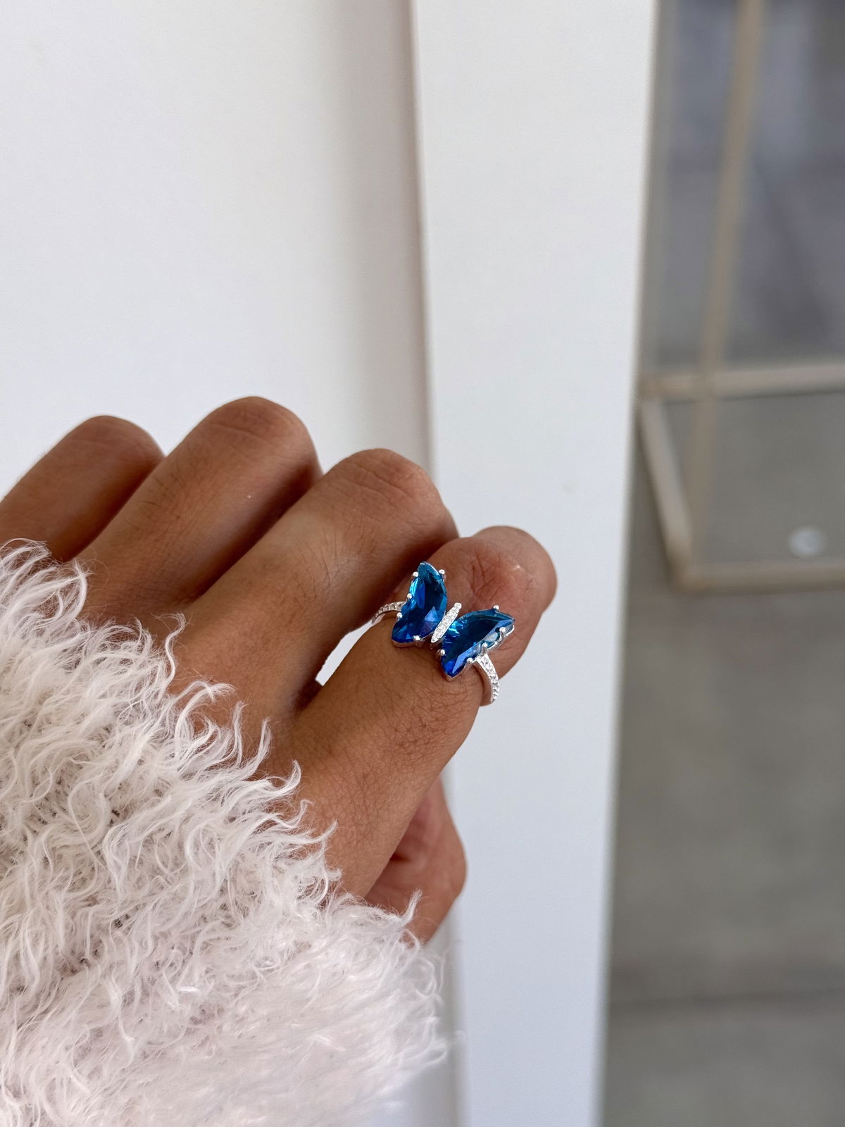 Anillo mariposa azul, plata925 15mm.