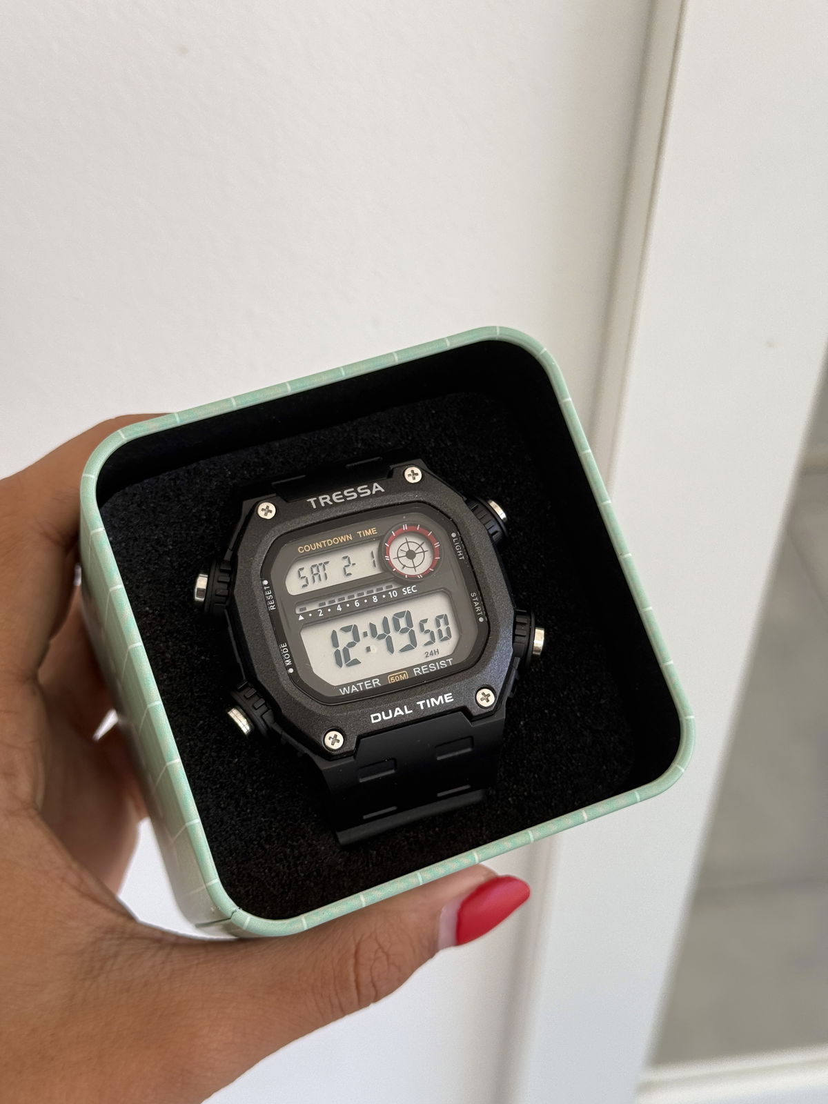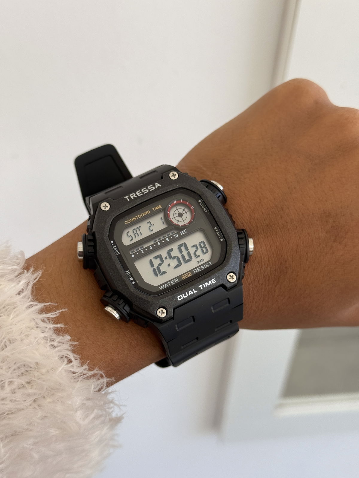 Reloj deportivo sumergible, digital, calendario, alarma, luz.