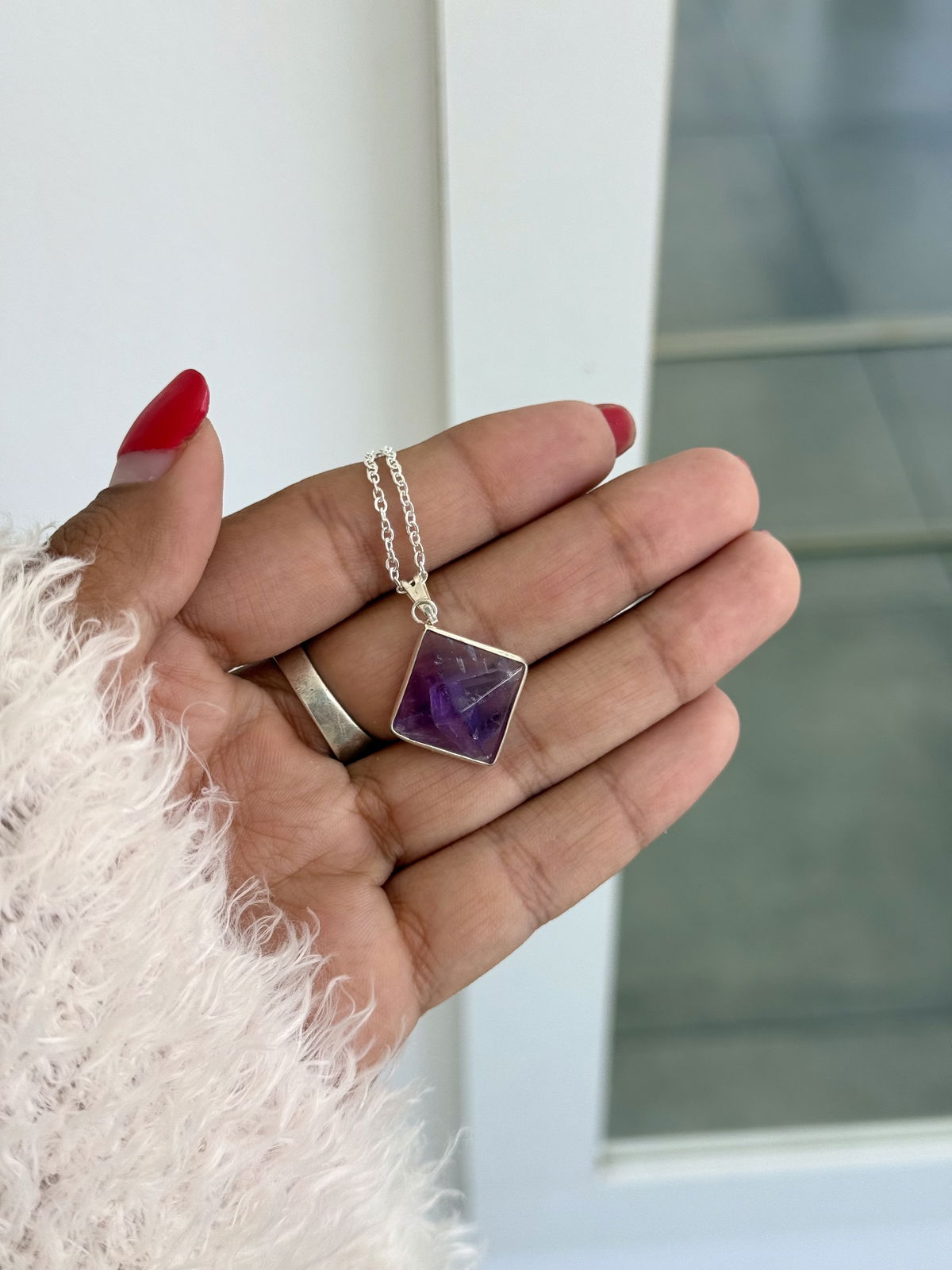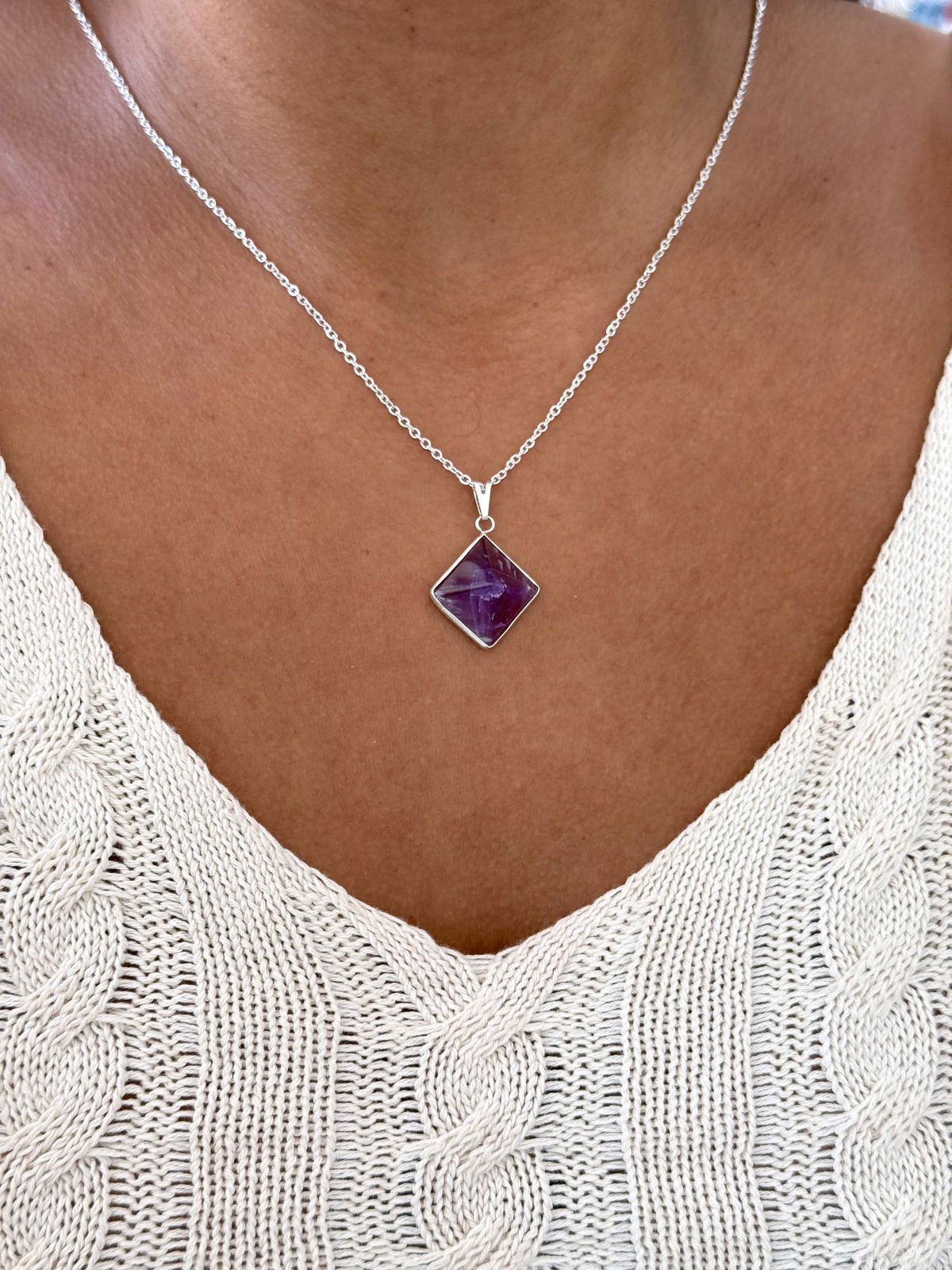 Collar piedra acero blanco.