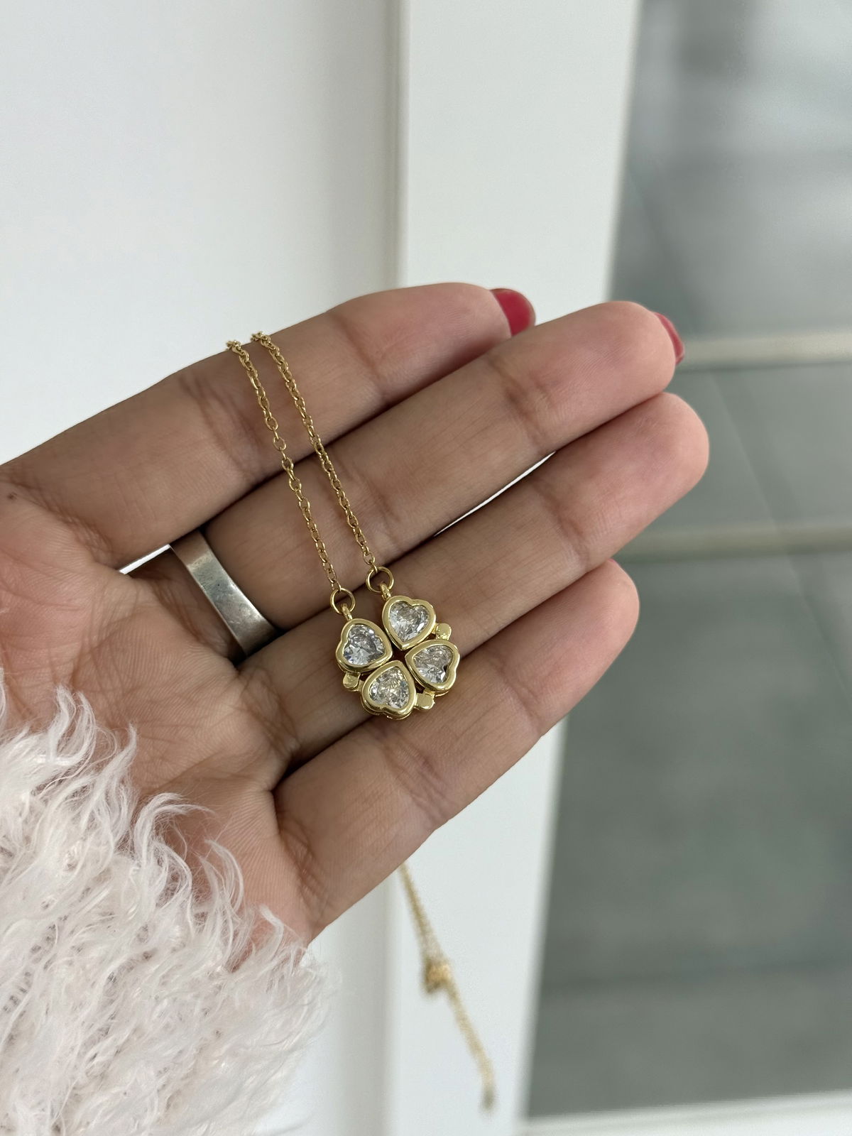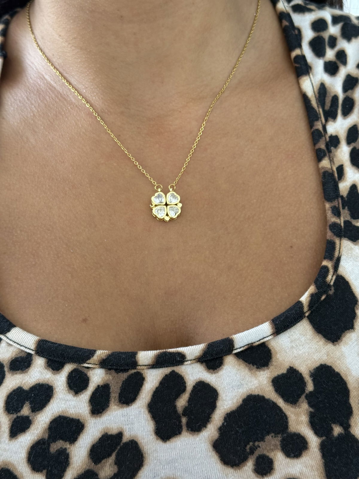Collar 2 en 1 imantado, trébol corazón acero dorado 50cm.