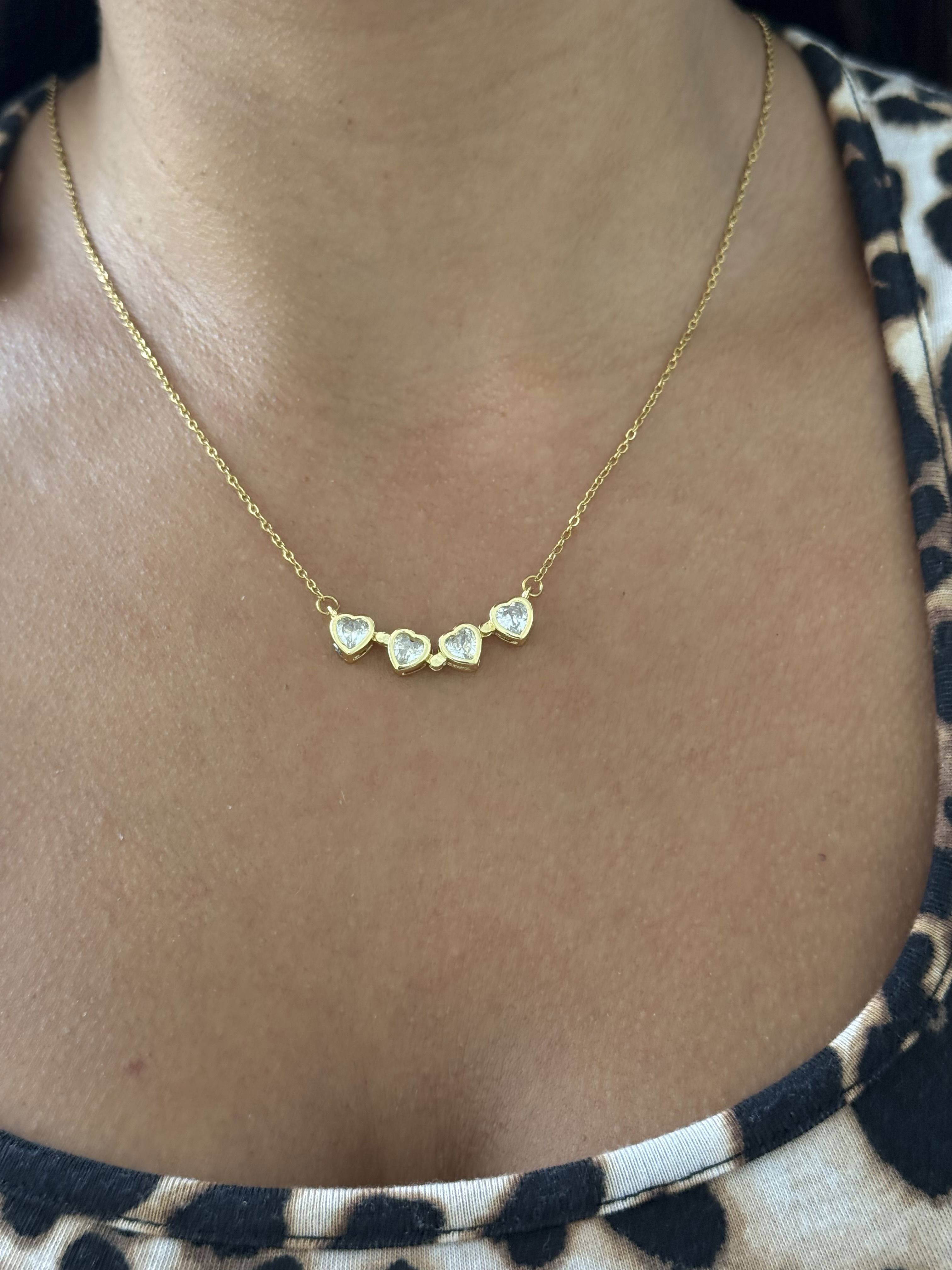 Collar 2 en 1 imantado, trébol corazón acero dorado 50cm.