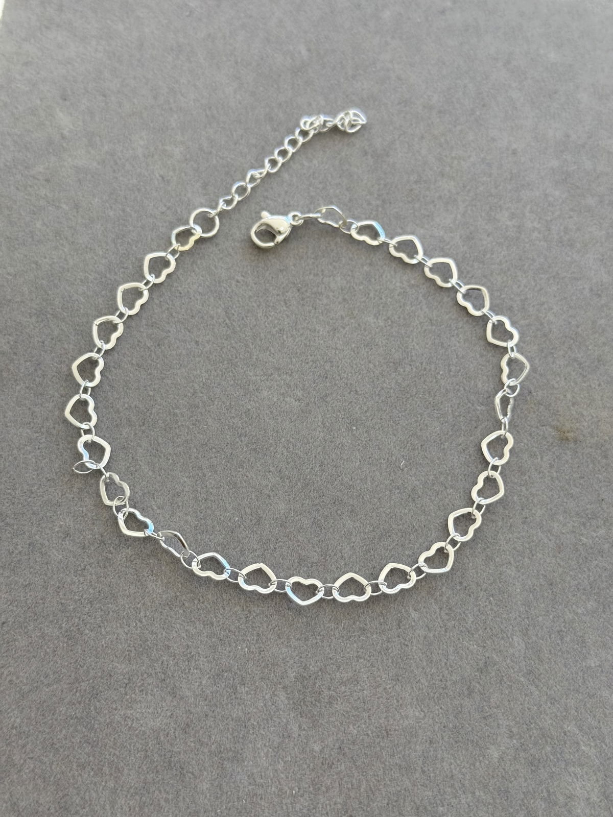 Tobillera corazones calada, 27cm, acero blanco.