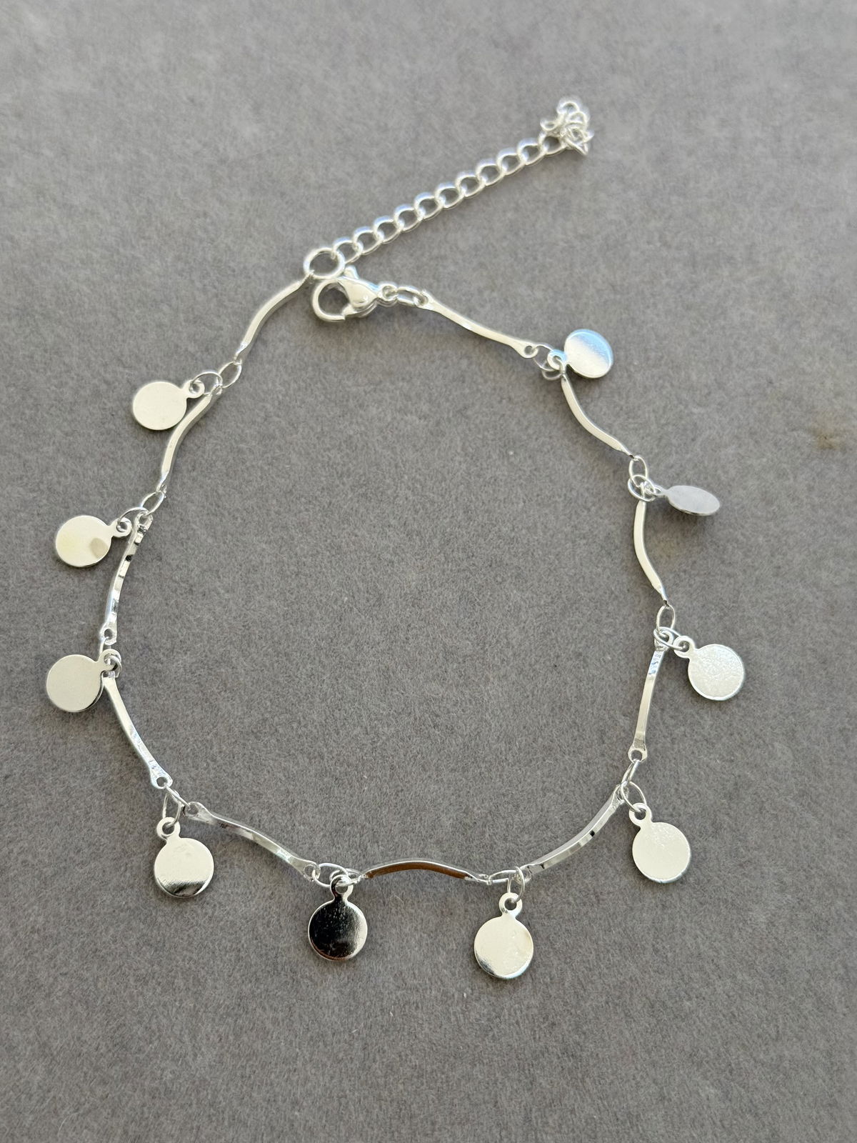 Tobillera monedas colgantes, 26cm acero blanco.