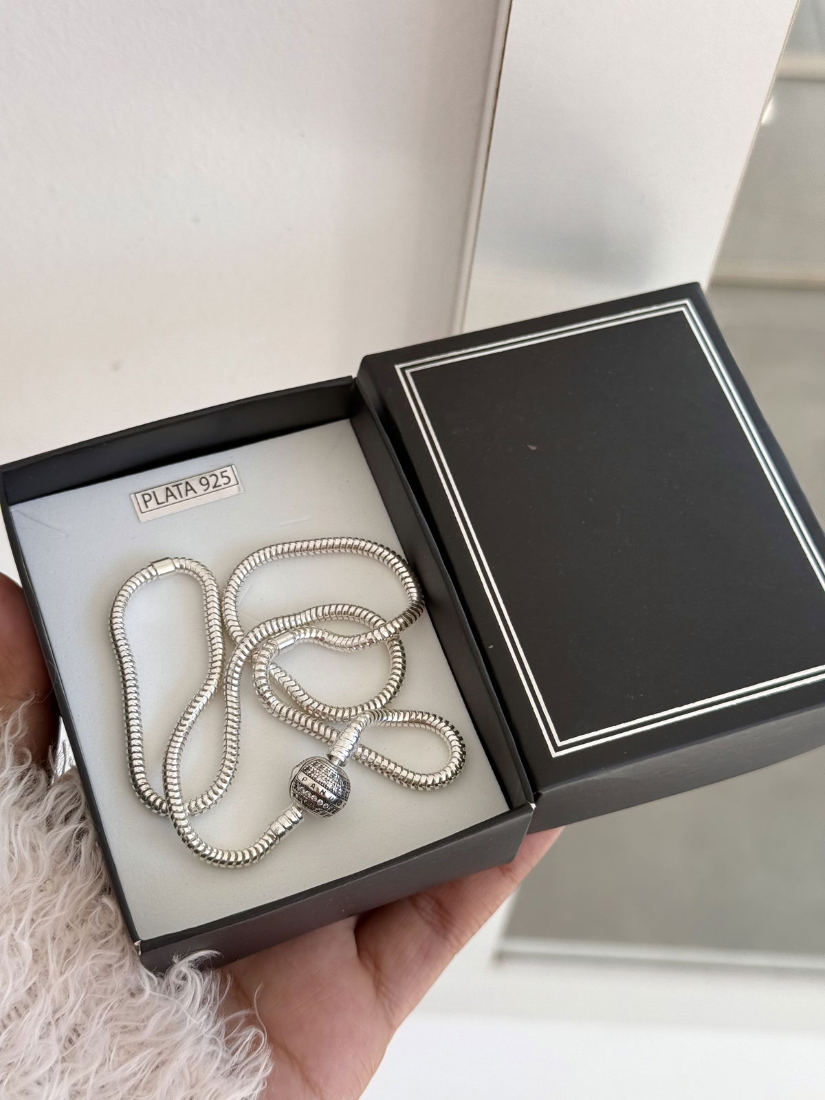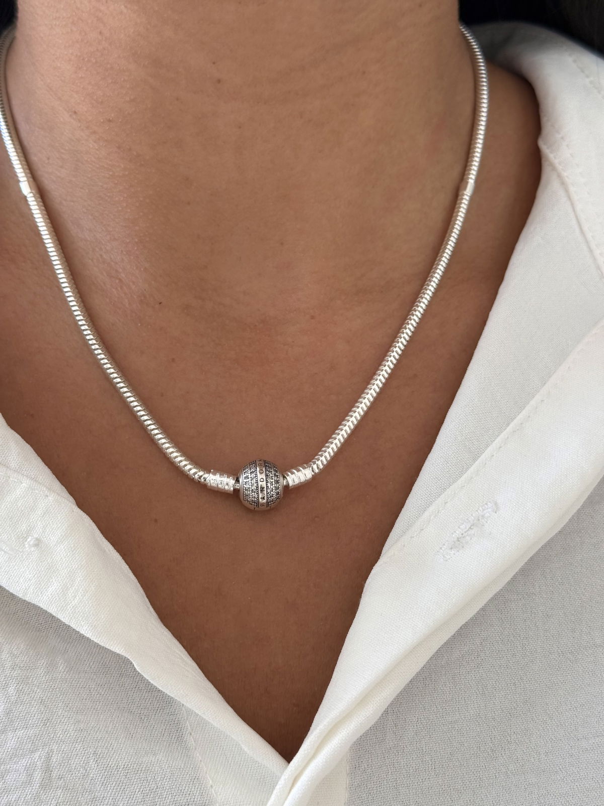 Collar Pandora cierre brillo plata925, 45cm.