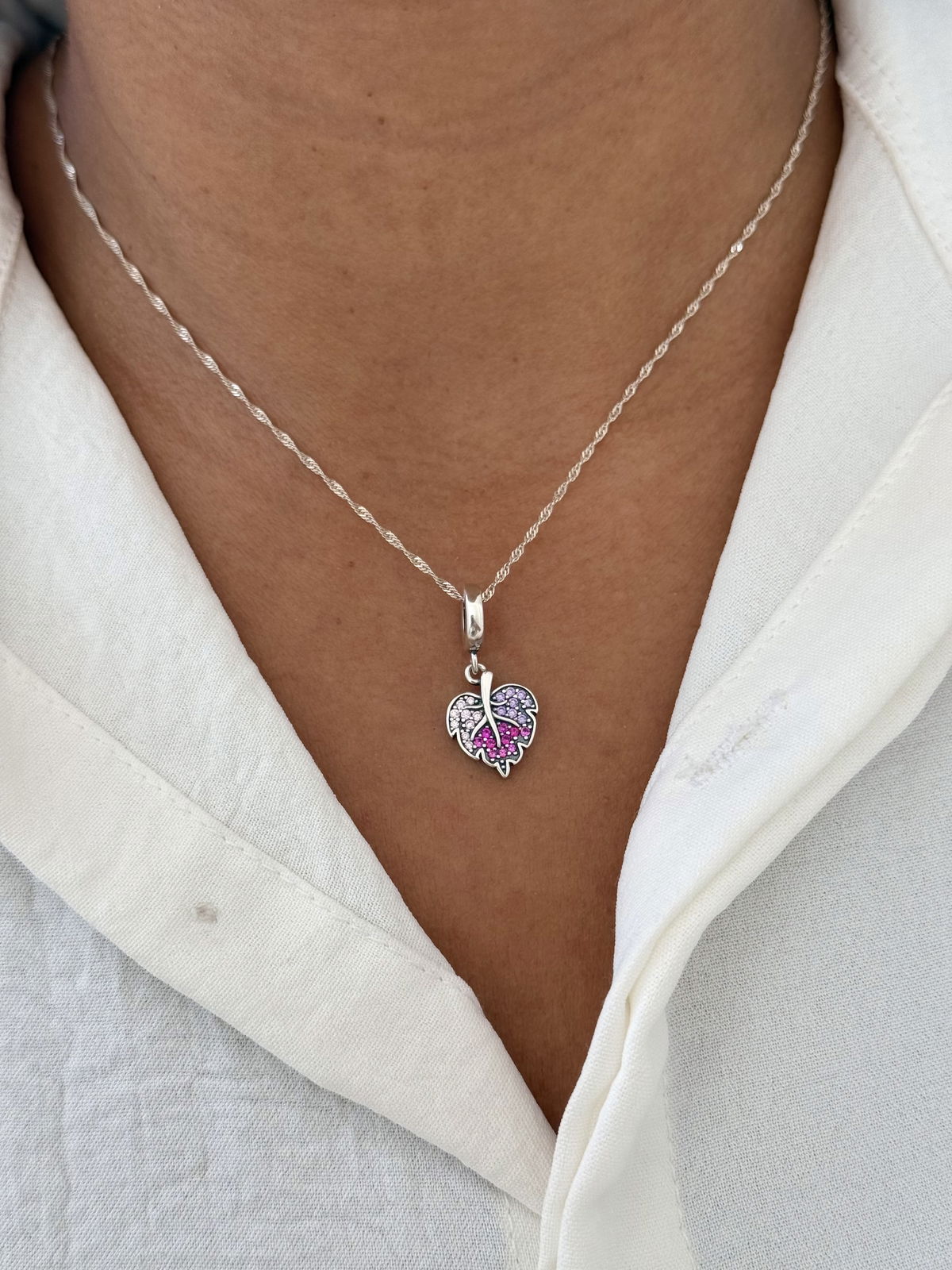 Conjunto cadena Singapur y charms hoja con brillo y colores plata925.