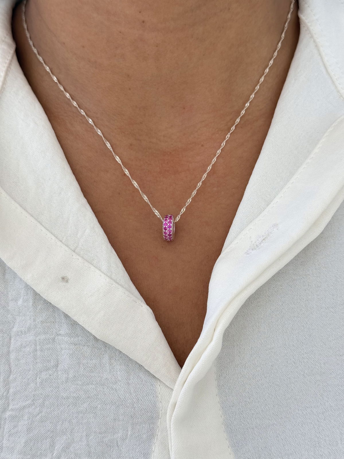 Conjunto cadena Singapur con dona fucsia plata925.