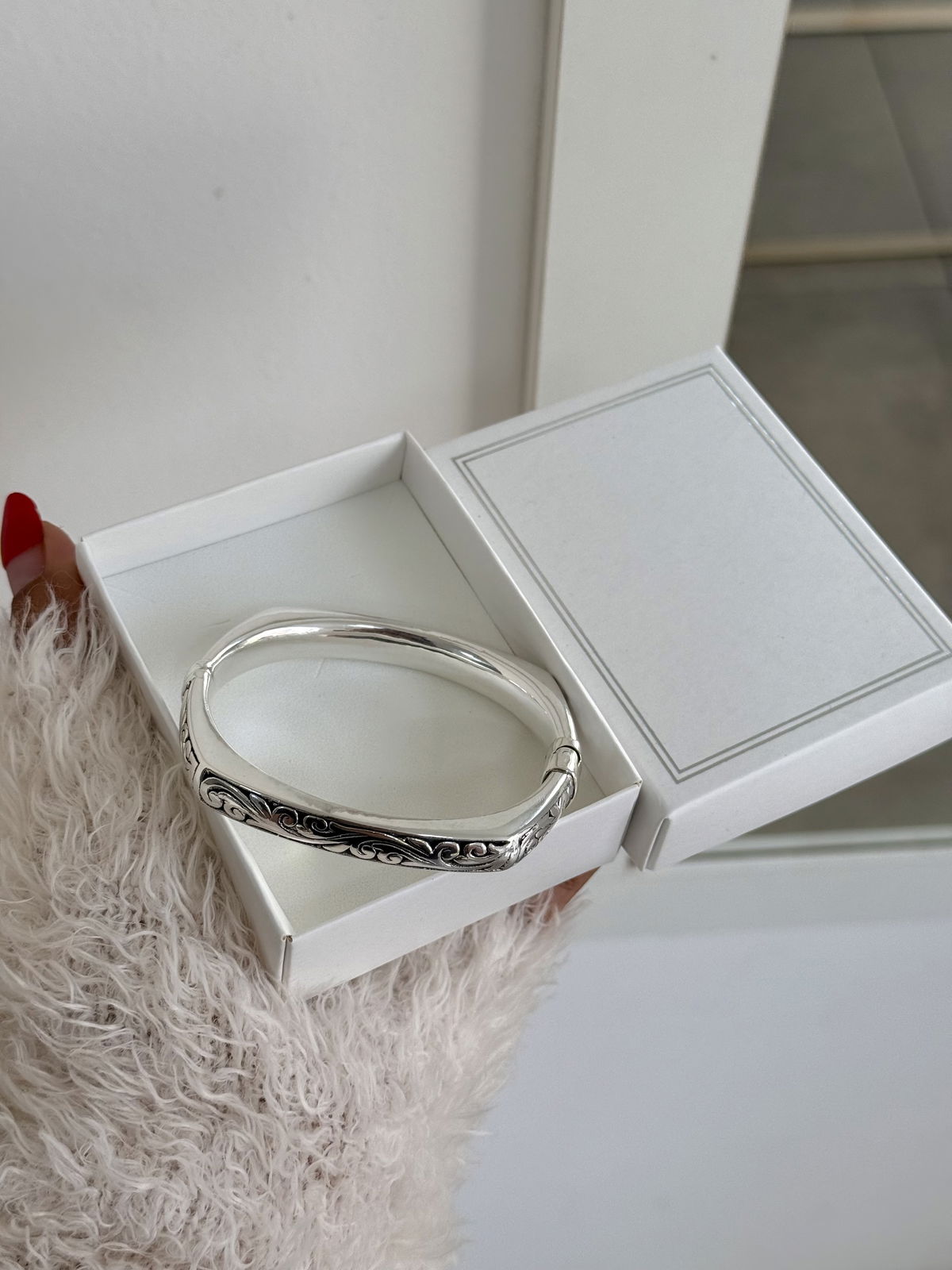 Esclava cuadrada plata inflada, 6cm de diámetro.