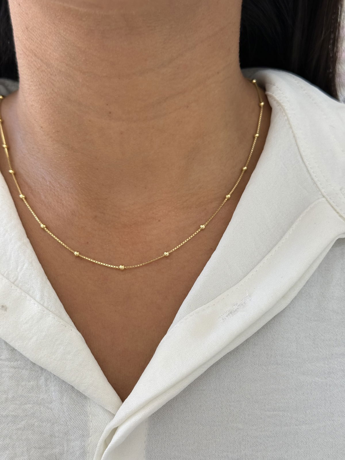 Cadena bolitas plata con baño de oro, 50cm.