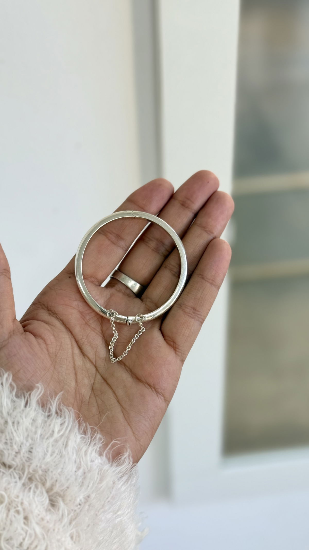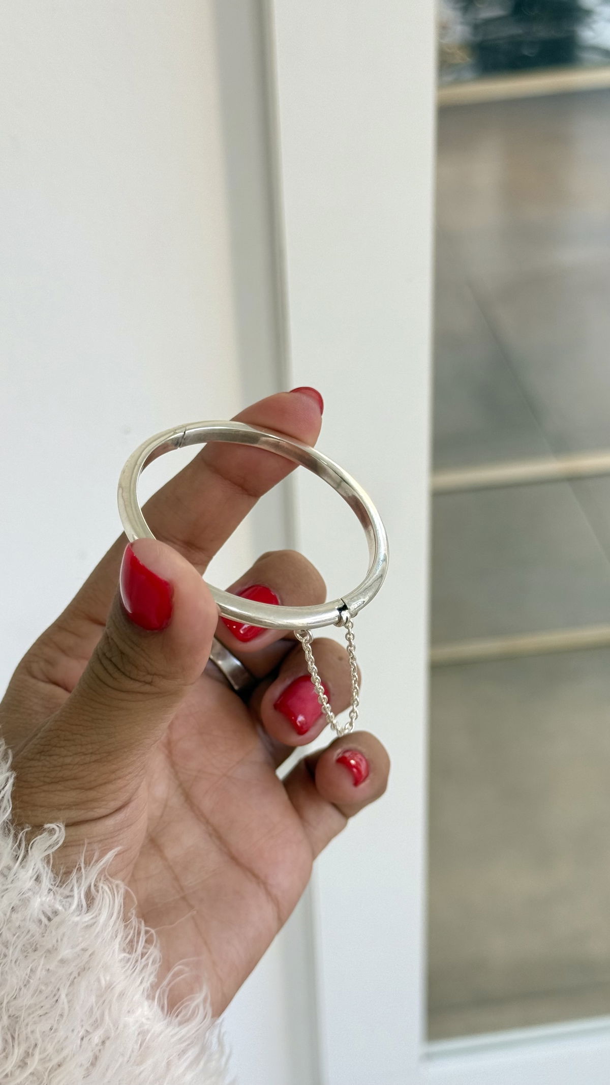 Esclava plata925 con cadena de seguridad, para nenas 4,5cm de diámetro.