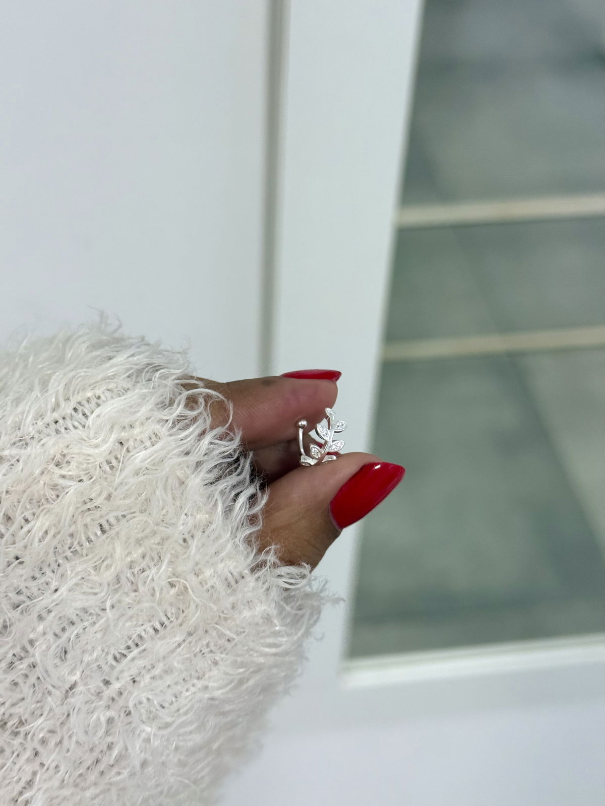 Cuff a presión hojita con cristales plata925.