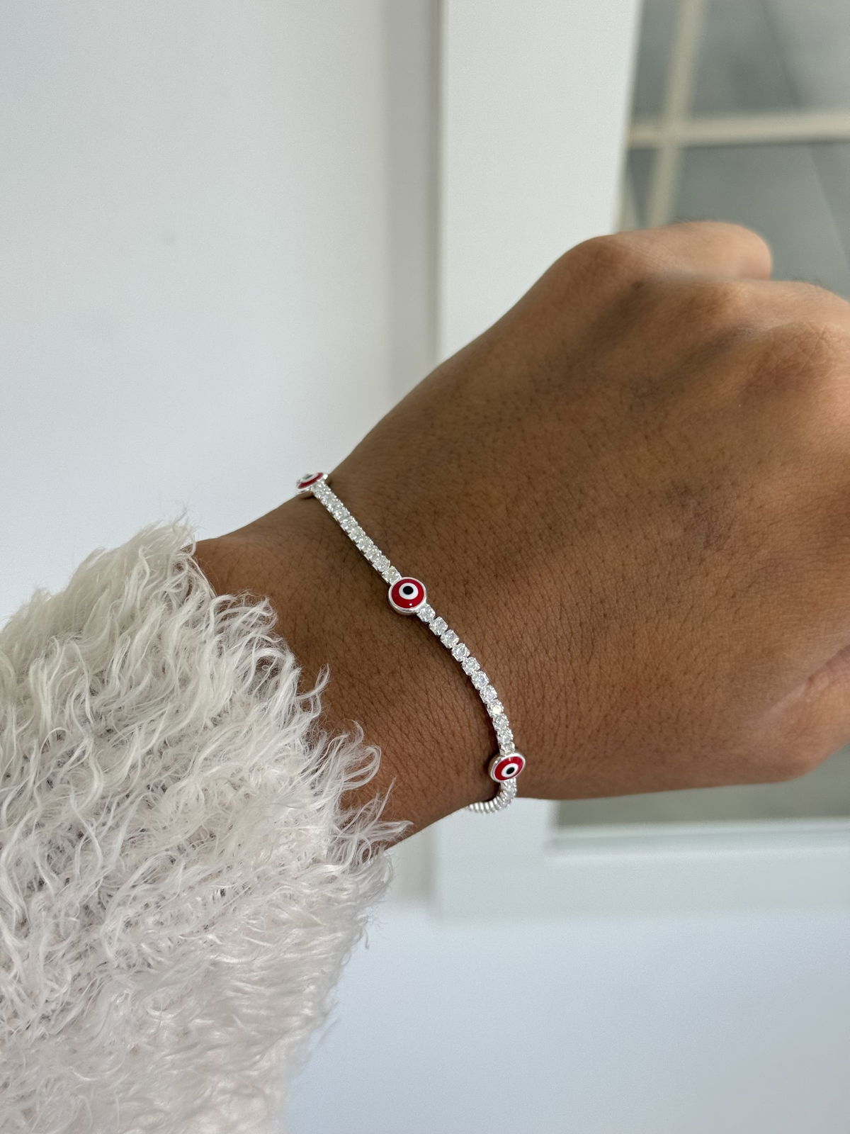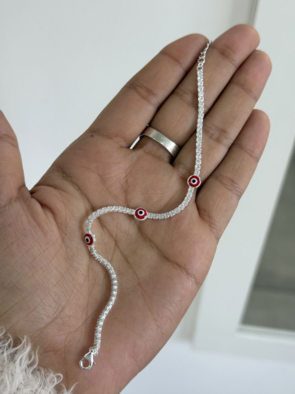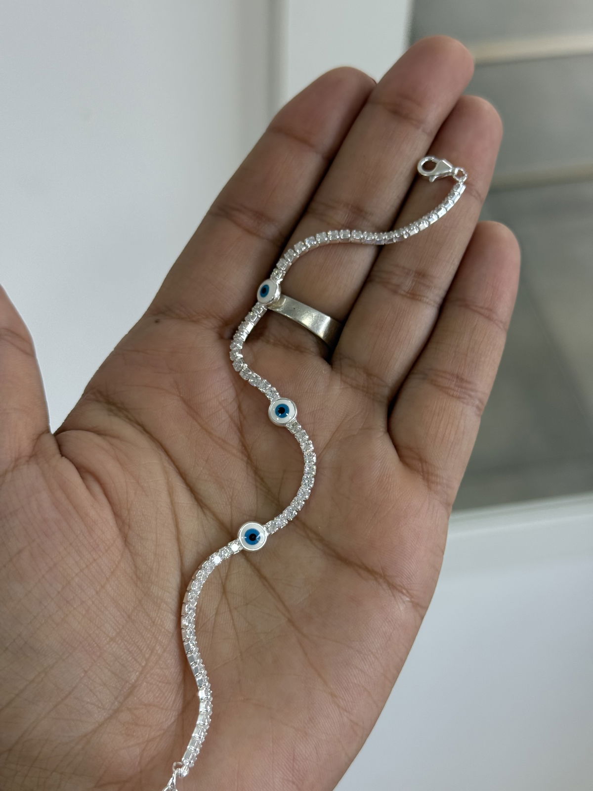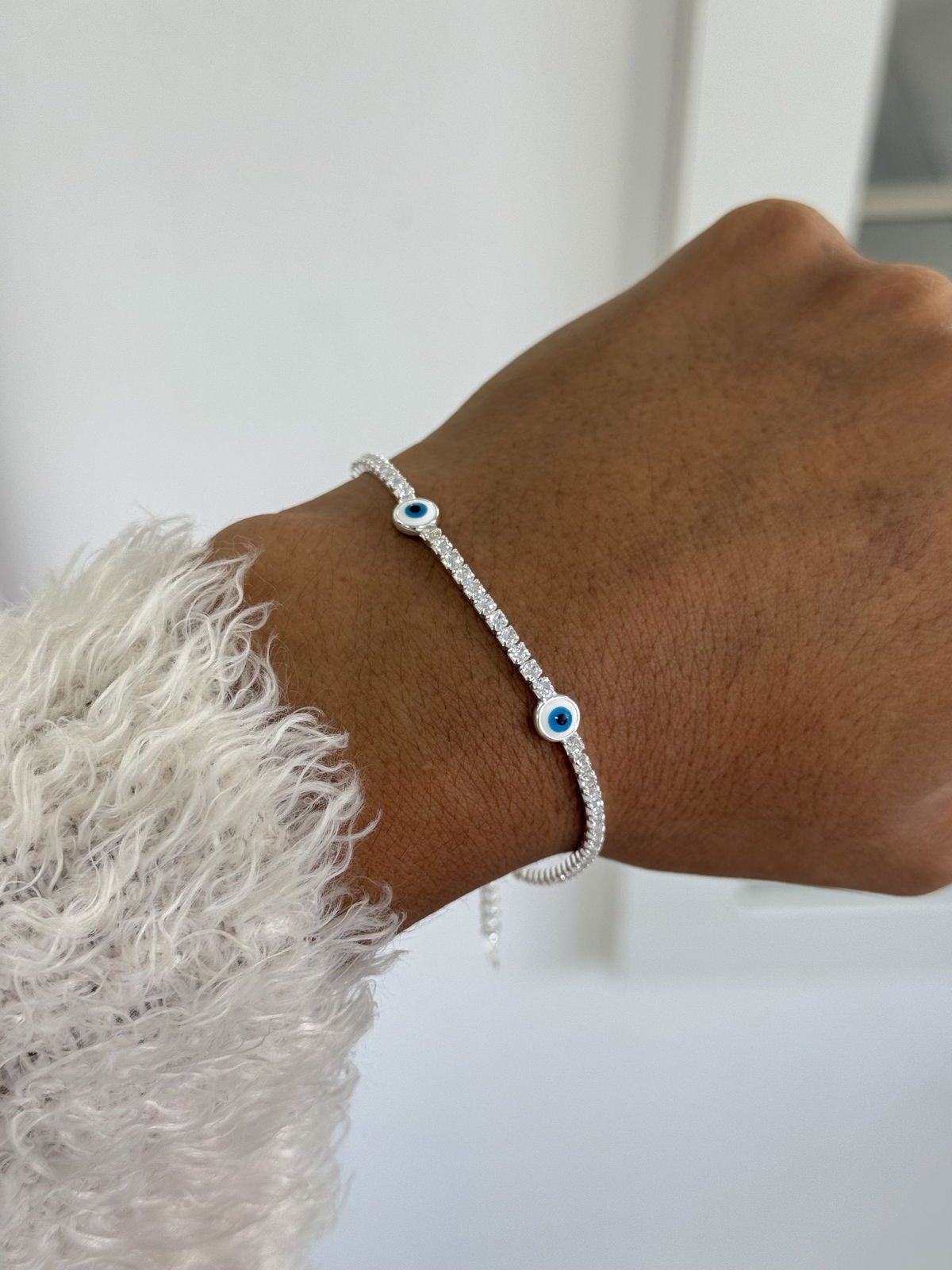 Pulsera cubics con ojitos turcos plata925, 20cm.