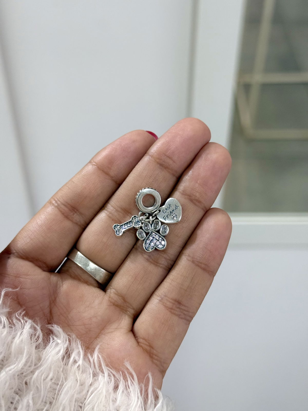Charms triple dije hueso, huella y grabado corazón plata925.