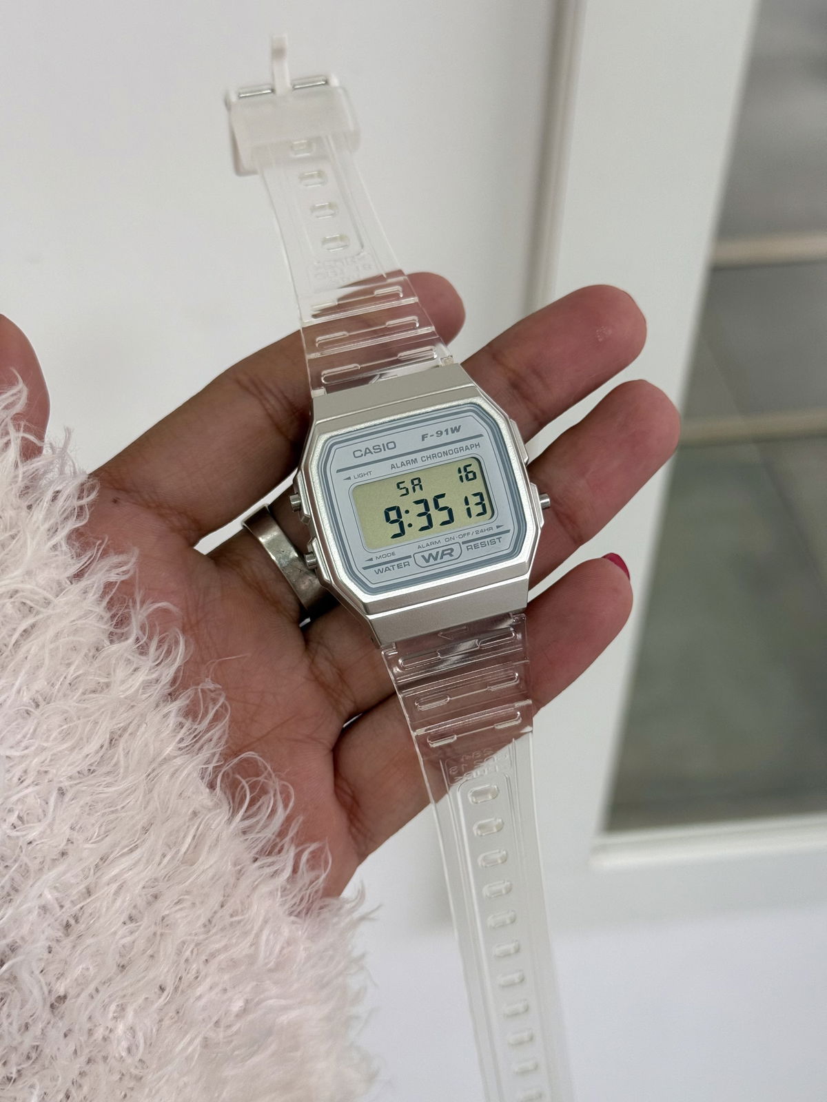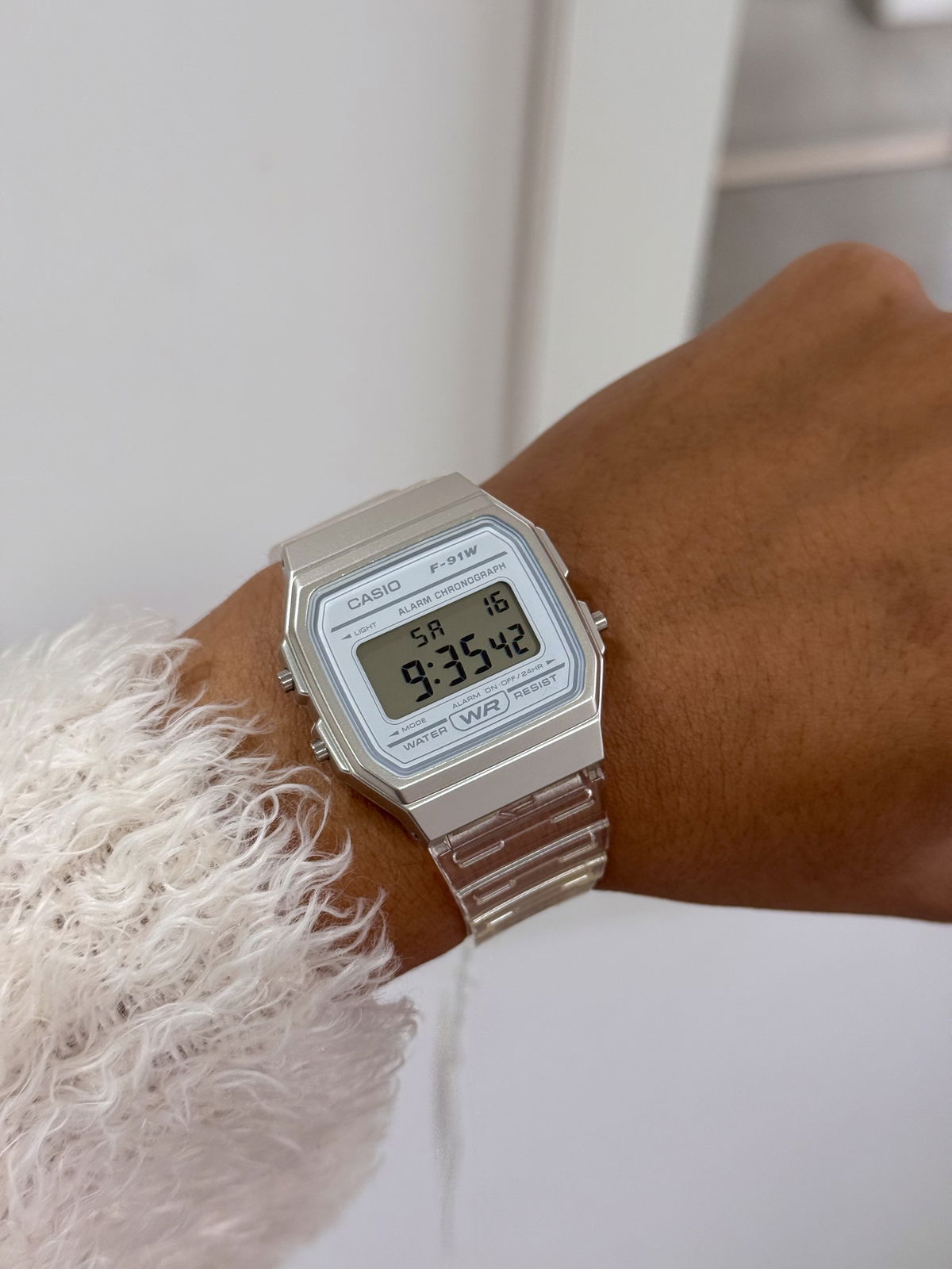 Reloj deportivo malla transparente, digital, luz, cronómetro, alarma, calendario, resistencia a salpicaduras, casio.