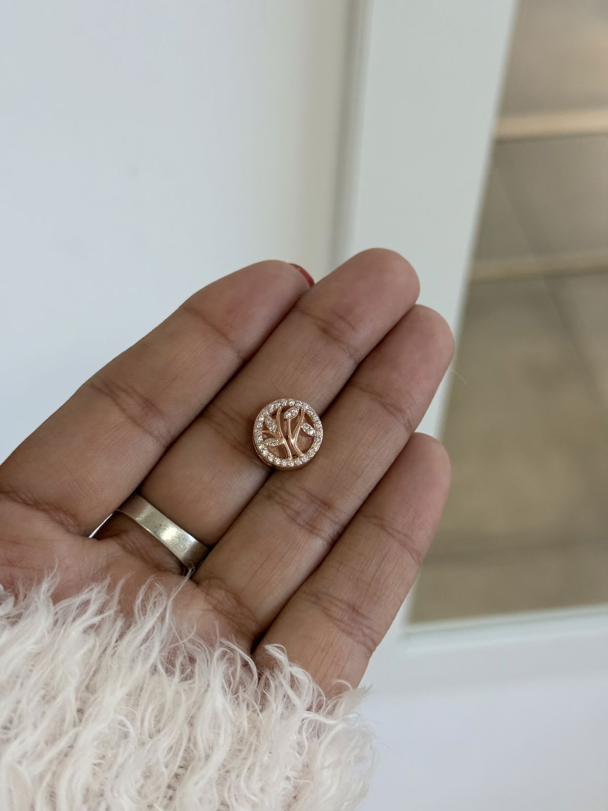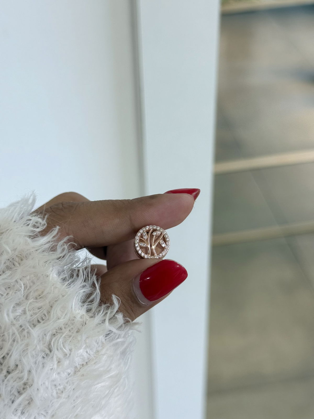 Charms chato árbol de la vida con cubics plata925 con baño rose.
