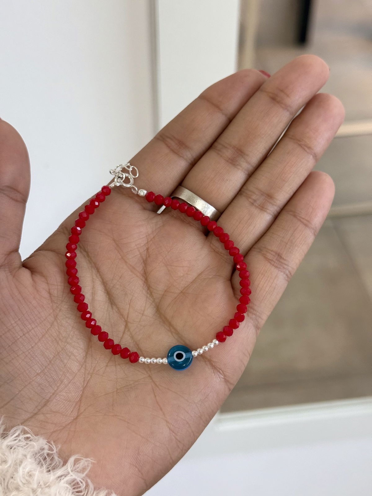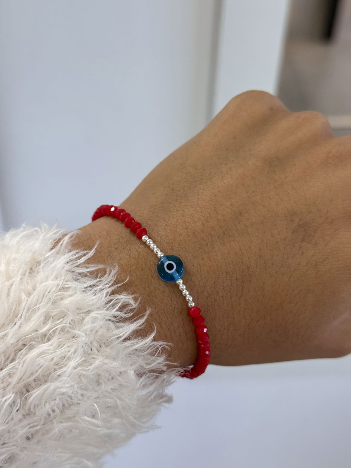 Pulsera cristales de roca con ojito turco plata925, 20cm.