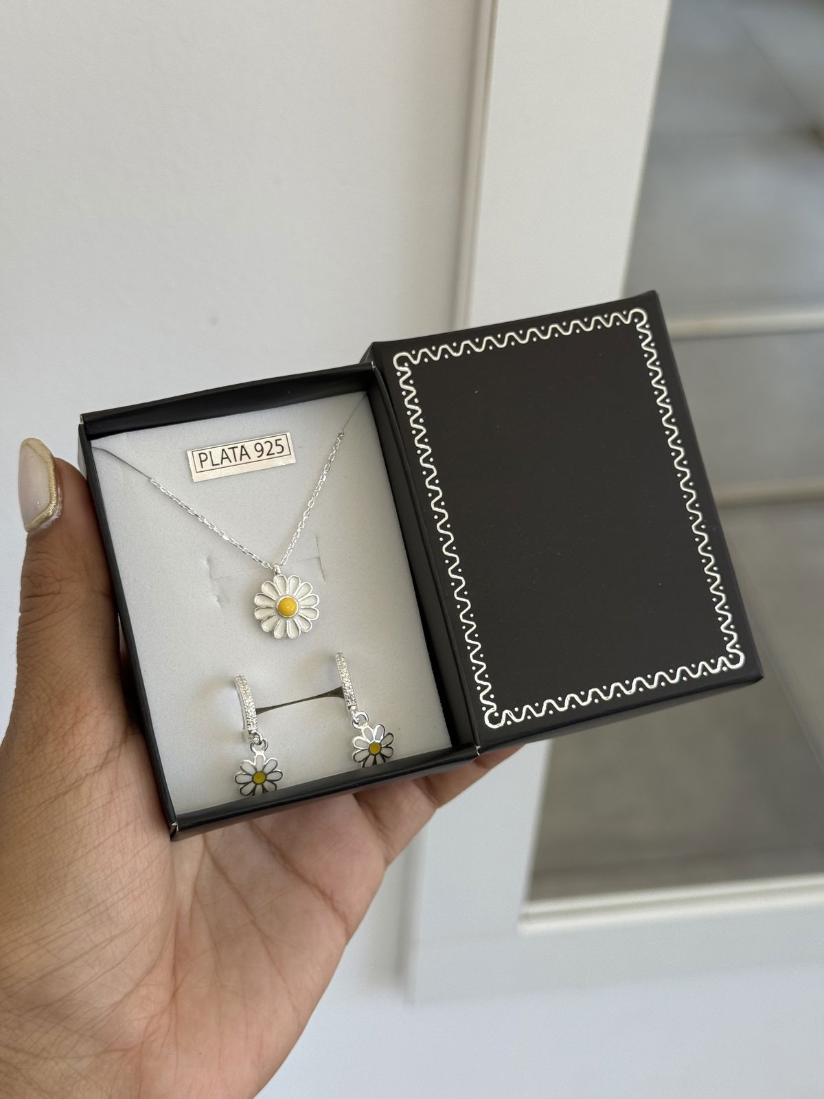 Ser con estuche collar y argollas plata925.