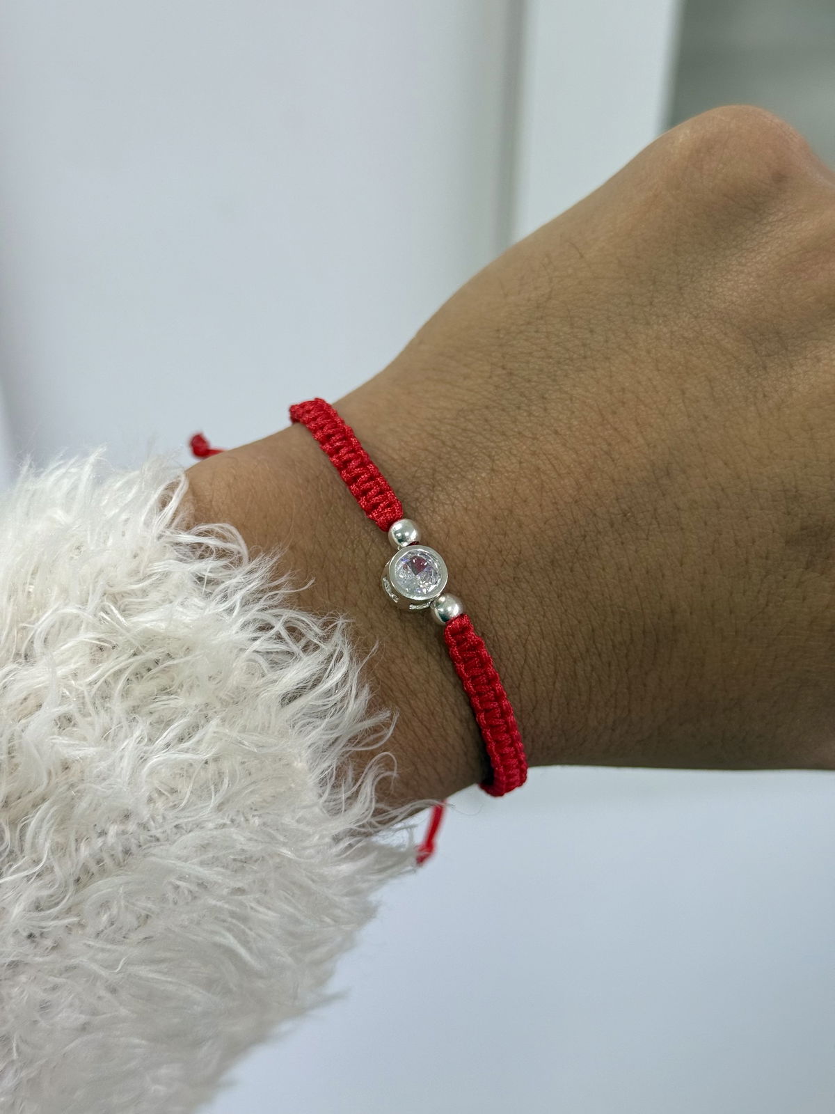Pulsera tejida ajustable con dije susanito cristal plata925.