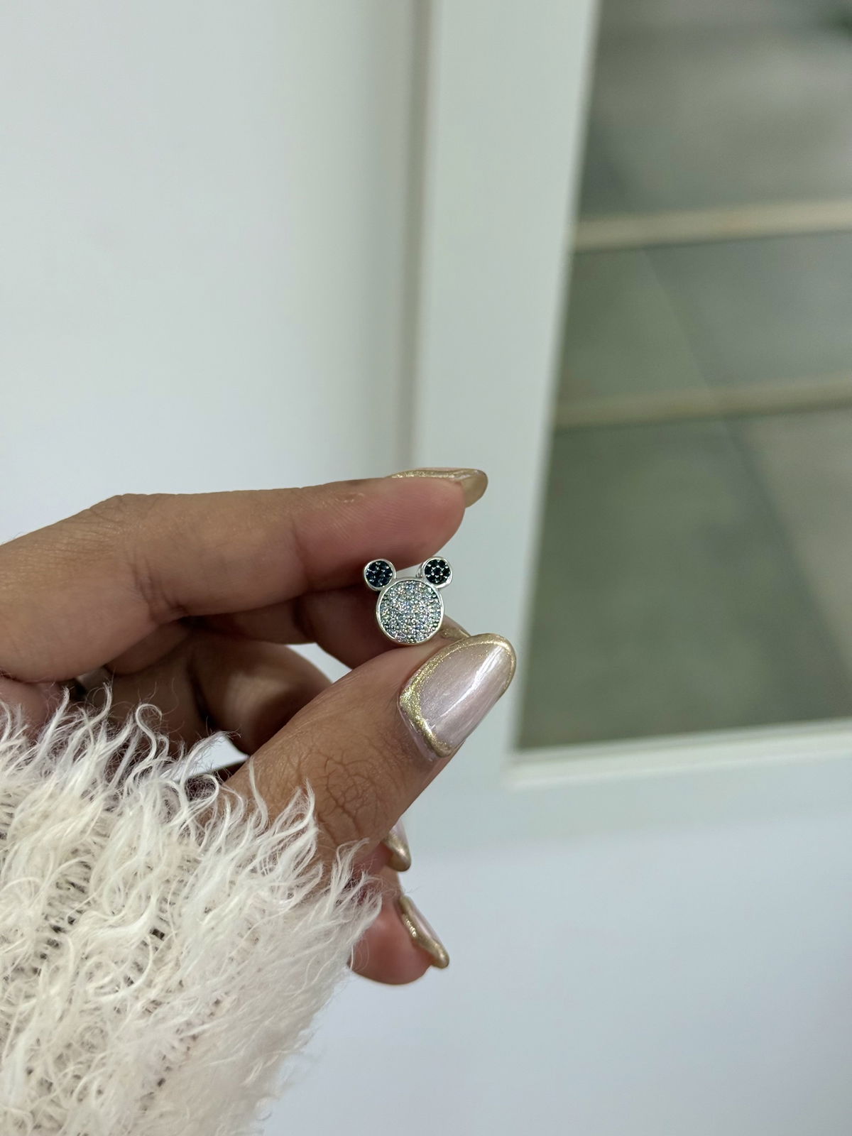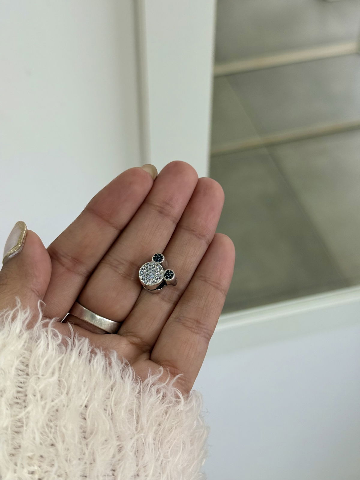 Charms cierre de seguridad orejas de mickey con cubics ambos lados plata925.