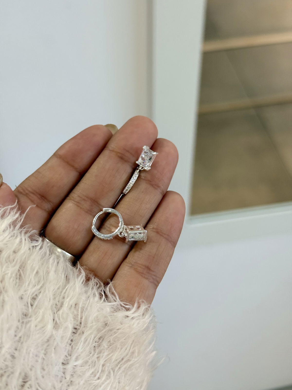 Argollas 1cm con dije colgante acero blanco.