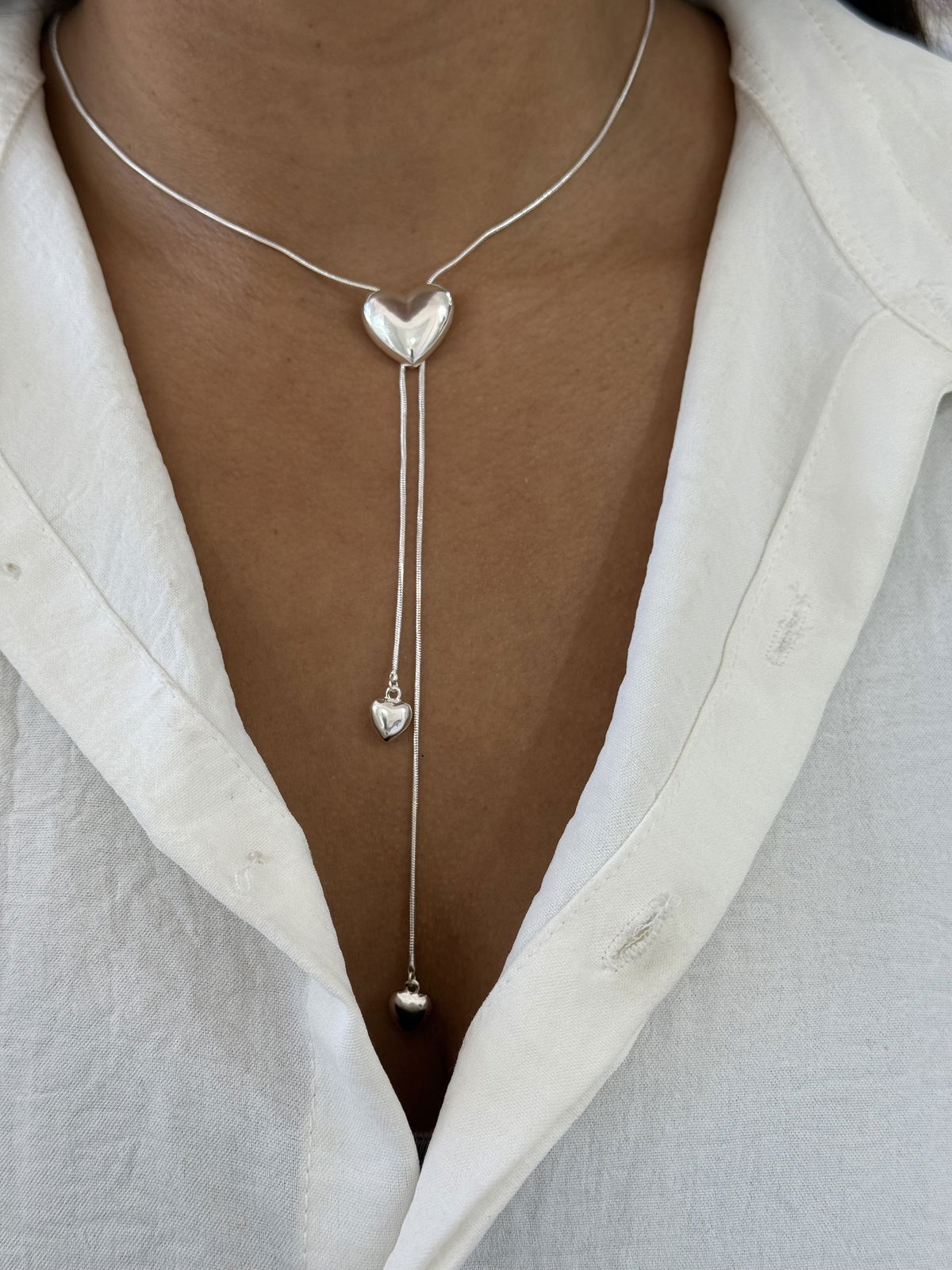 Corbatero ajustable chapón corazón acero blanco.