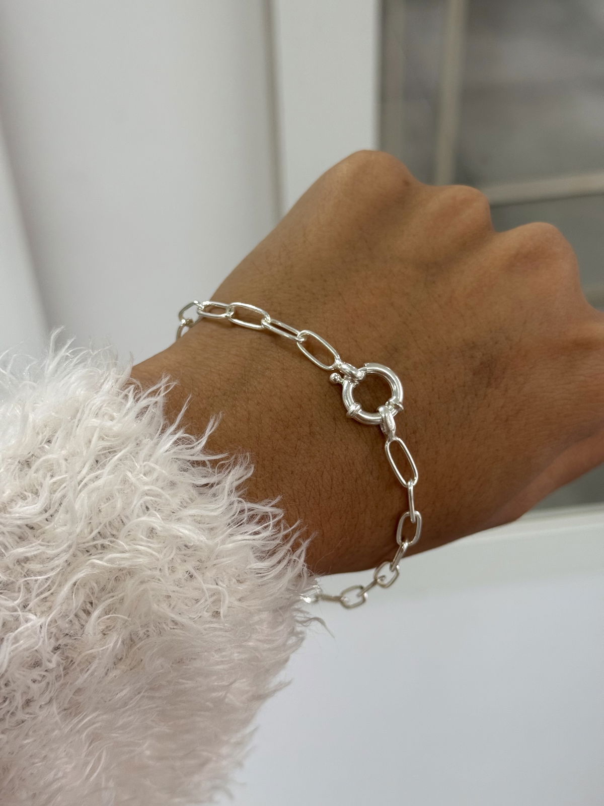Pulsera eslabones rectangulares con cierre marinero plata925, 21cm.