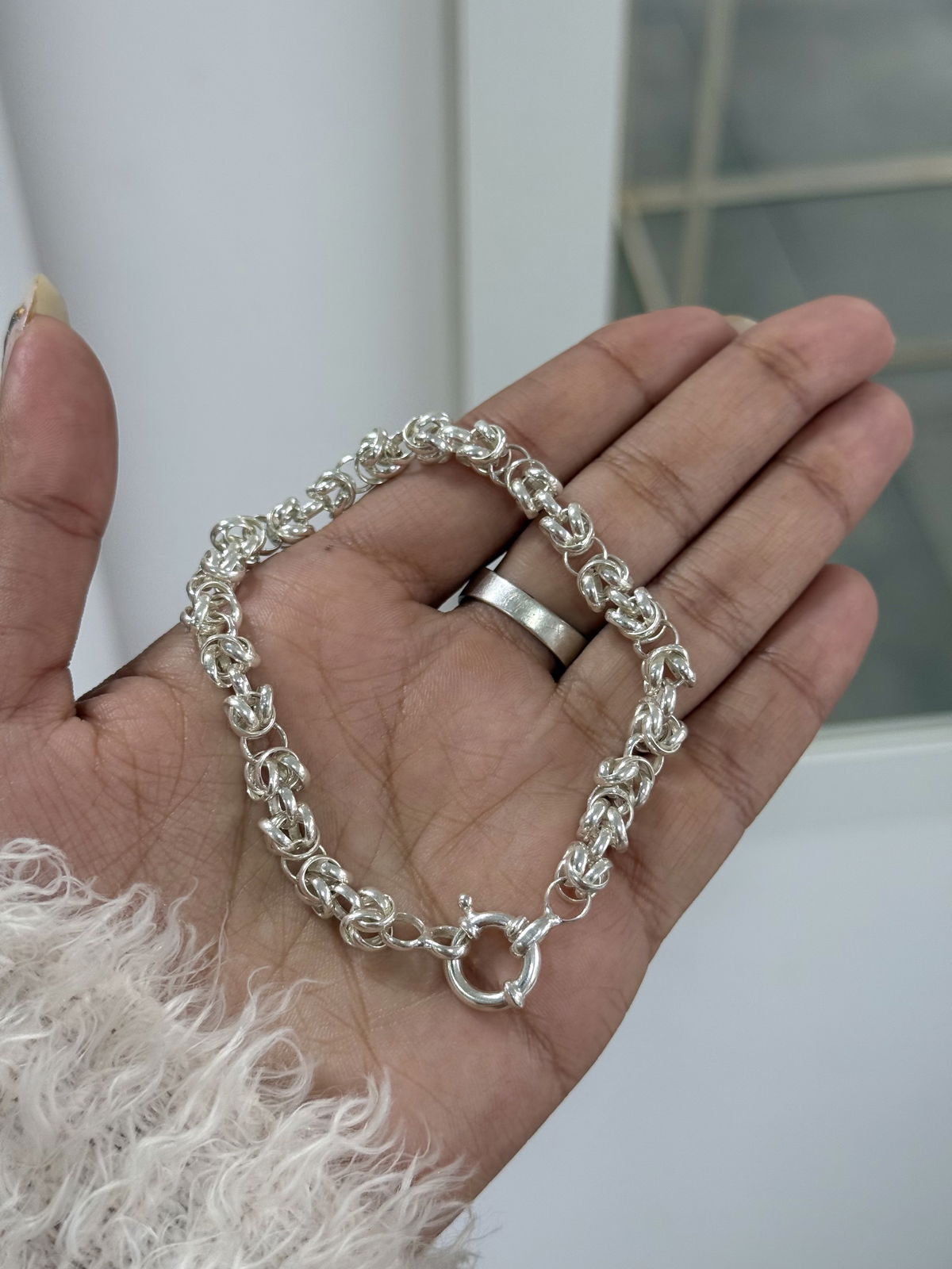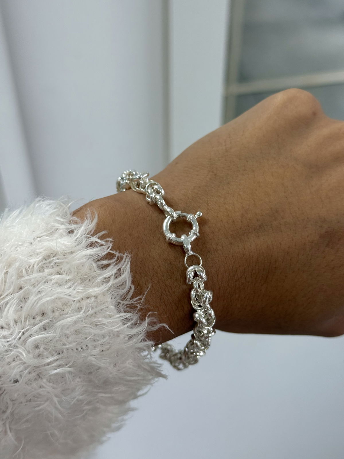 Pulsera punto peruano con cierre marinero plata925, 21cm.