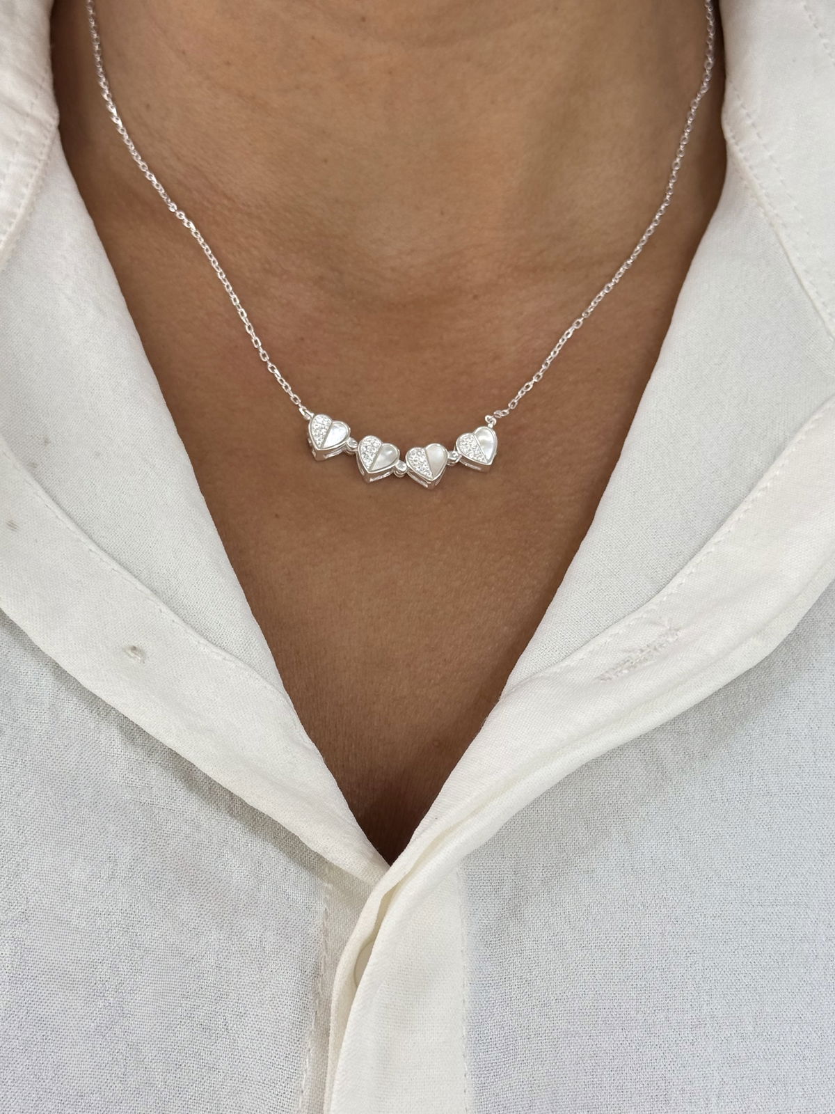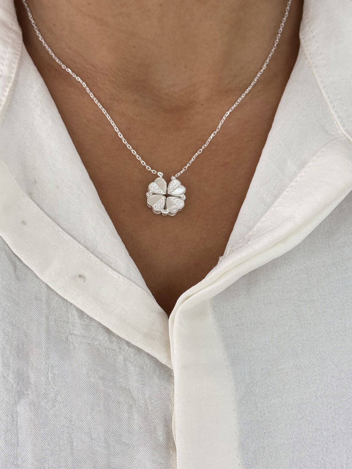 Collar 2 en 2 imantado corazón / trébol plata925, 45cm.