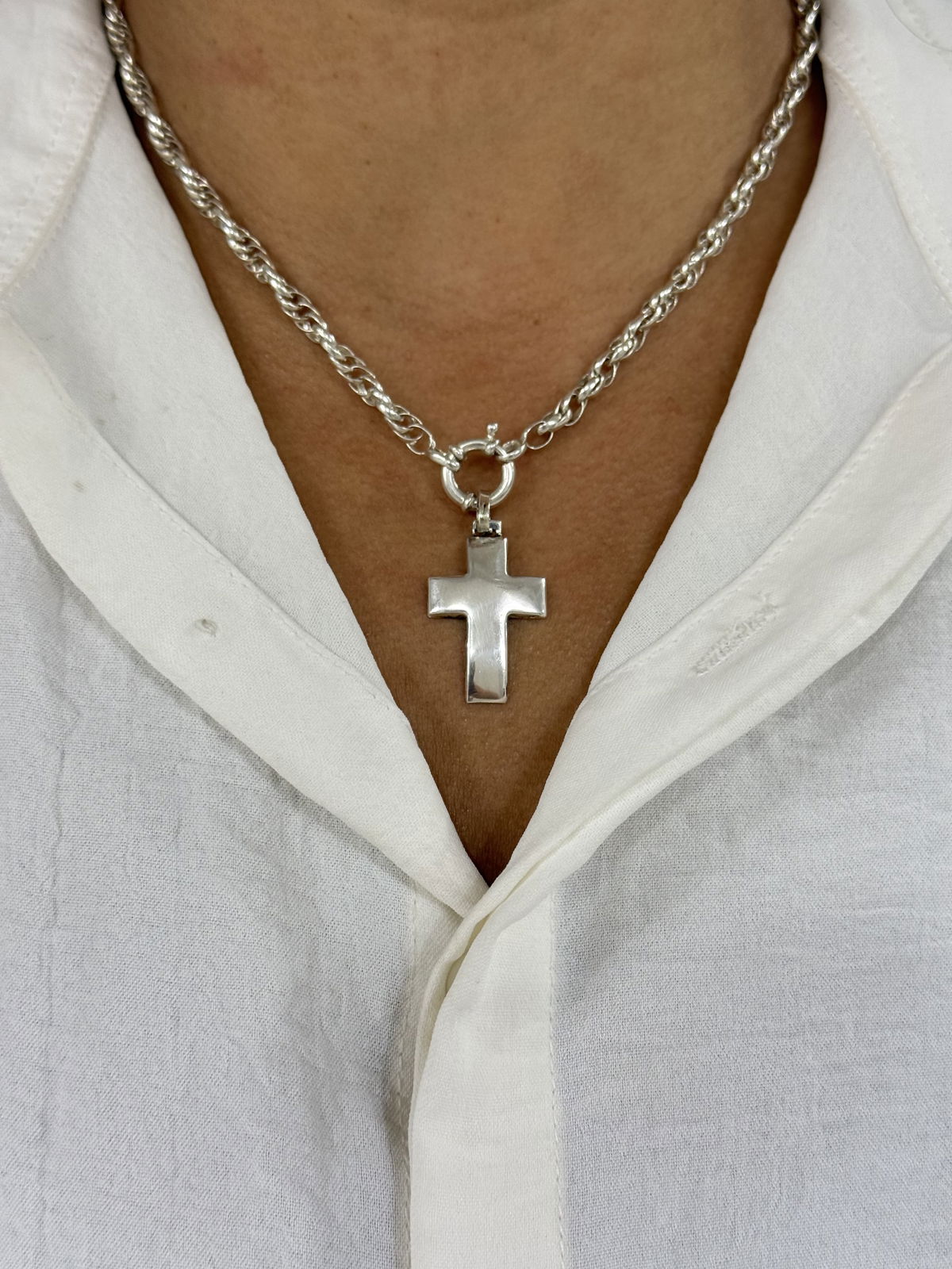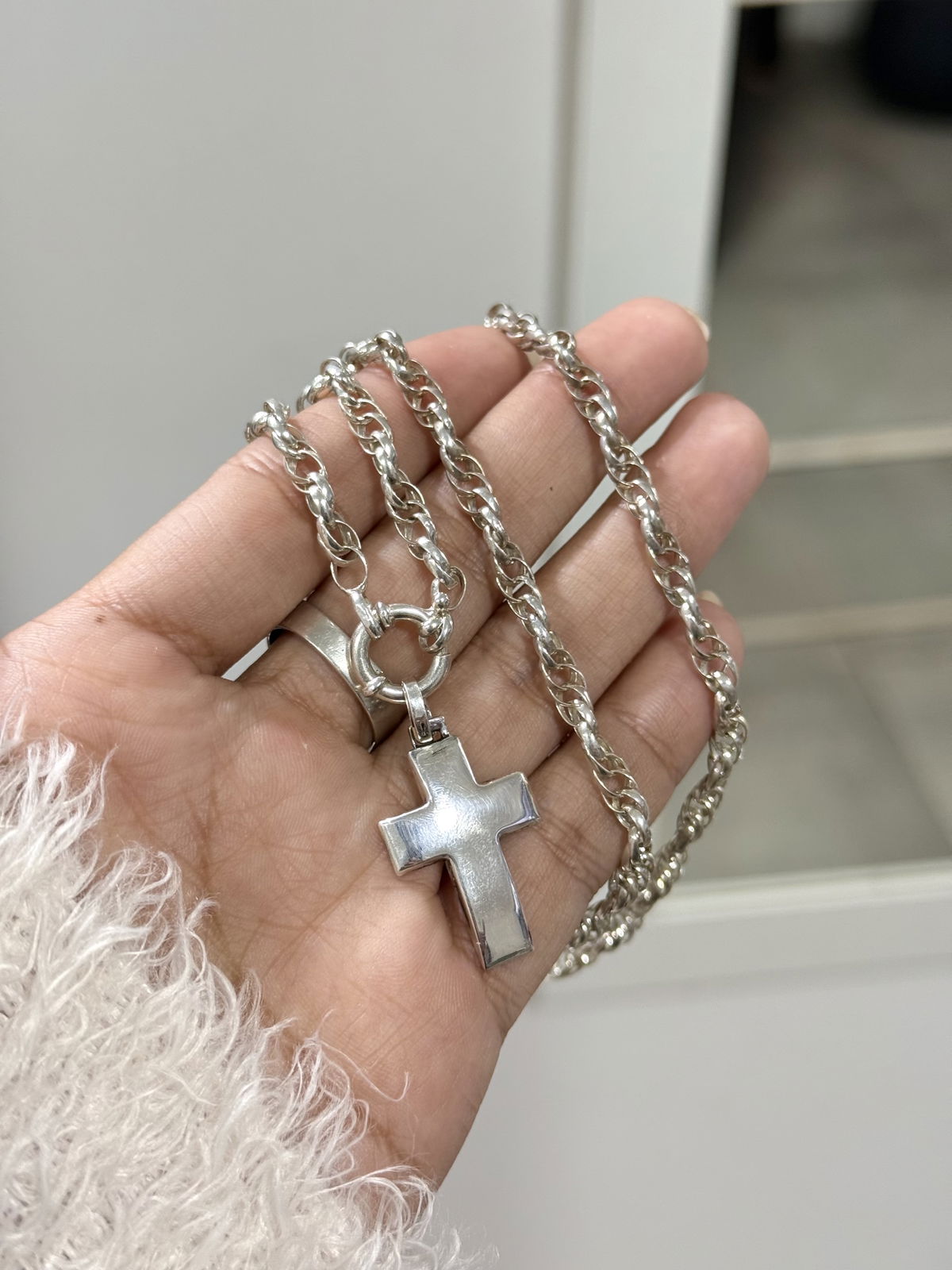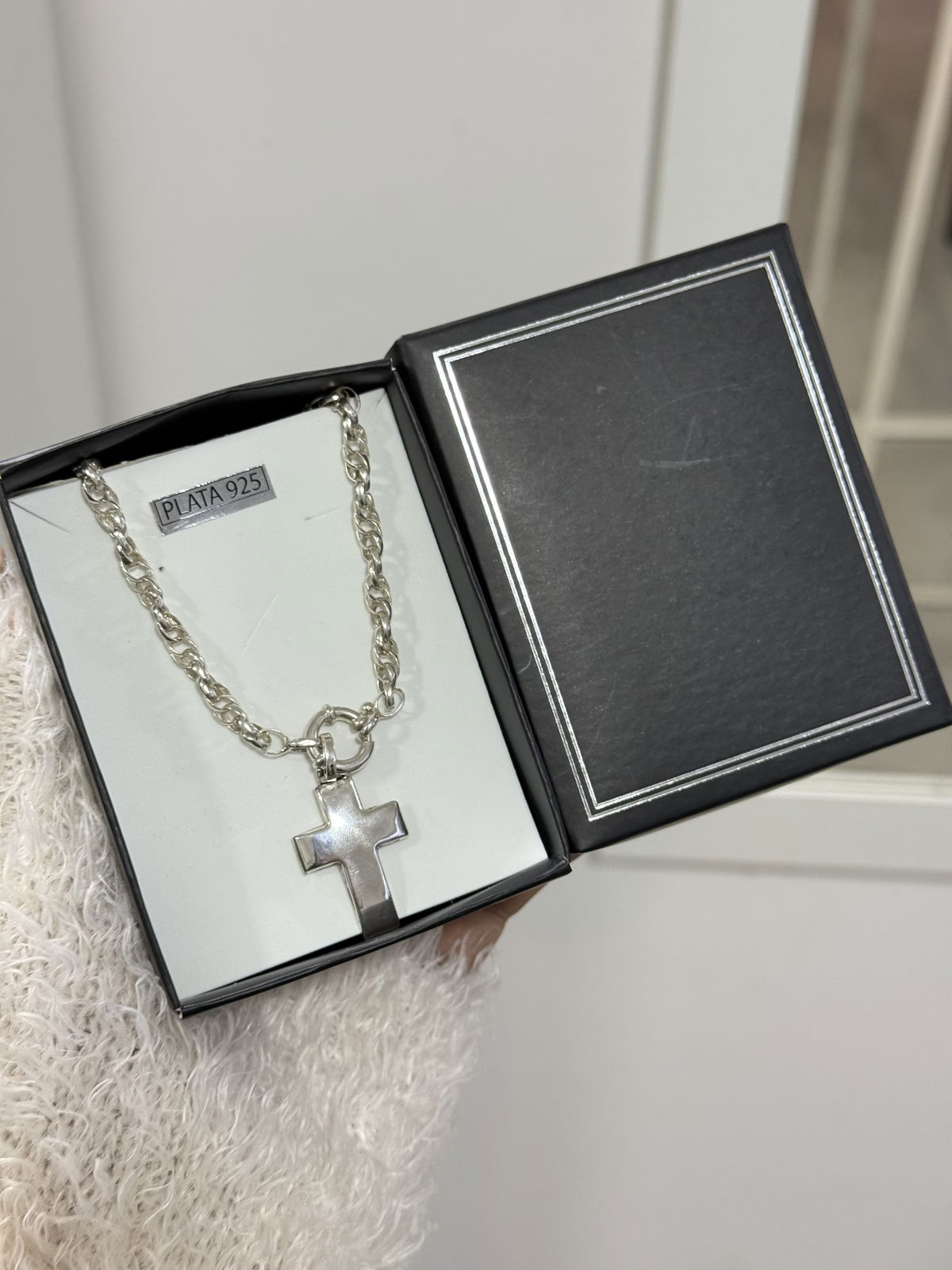 Conjunto cadena con cierre marinero y dije cruz plata925.