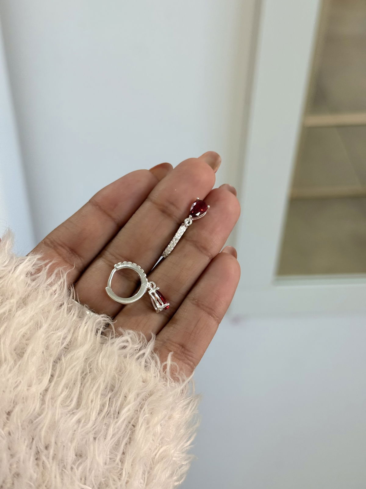 Argolla 1,3cm cierre clip con cubics rojo plata925.
