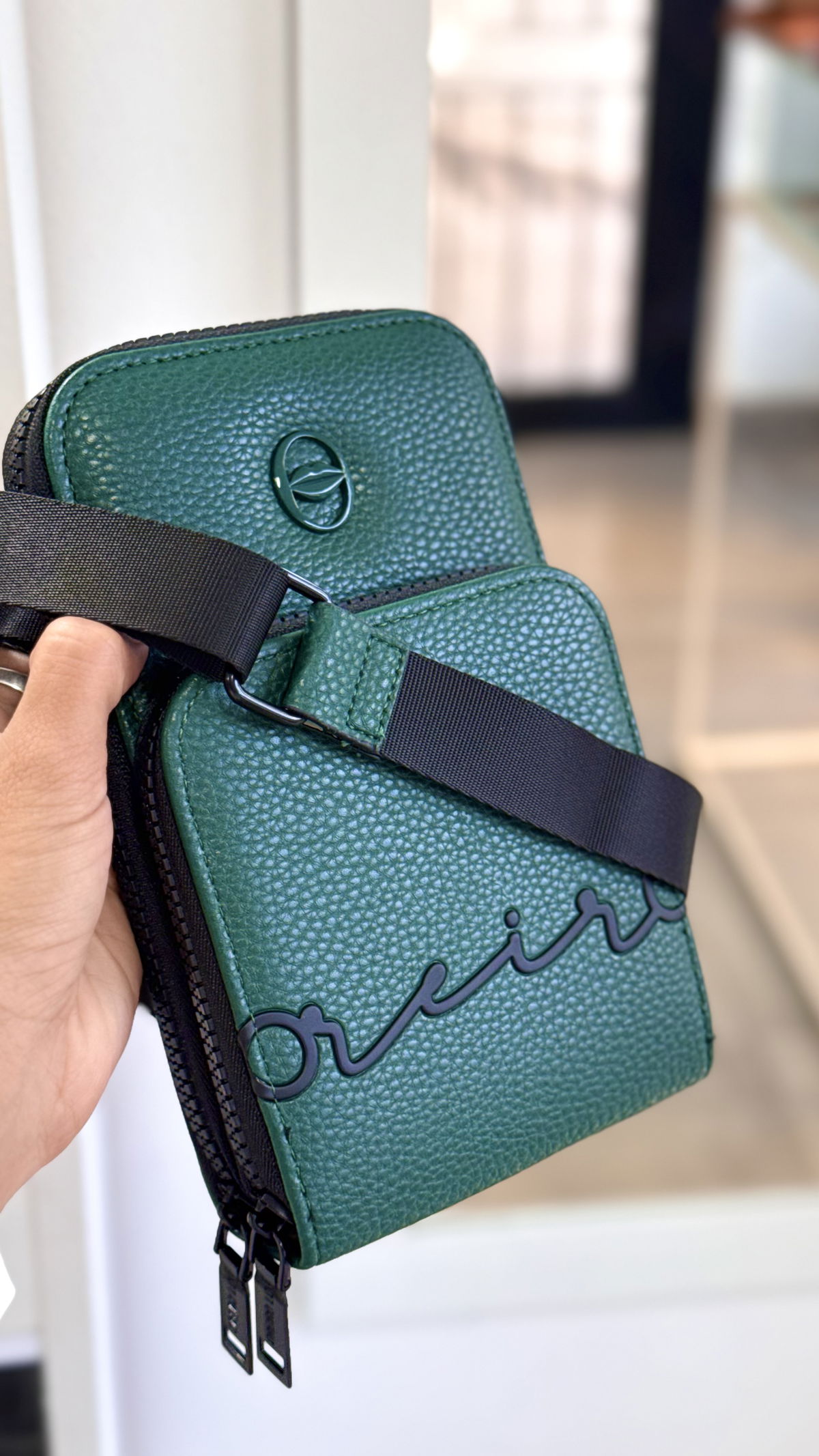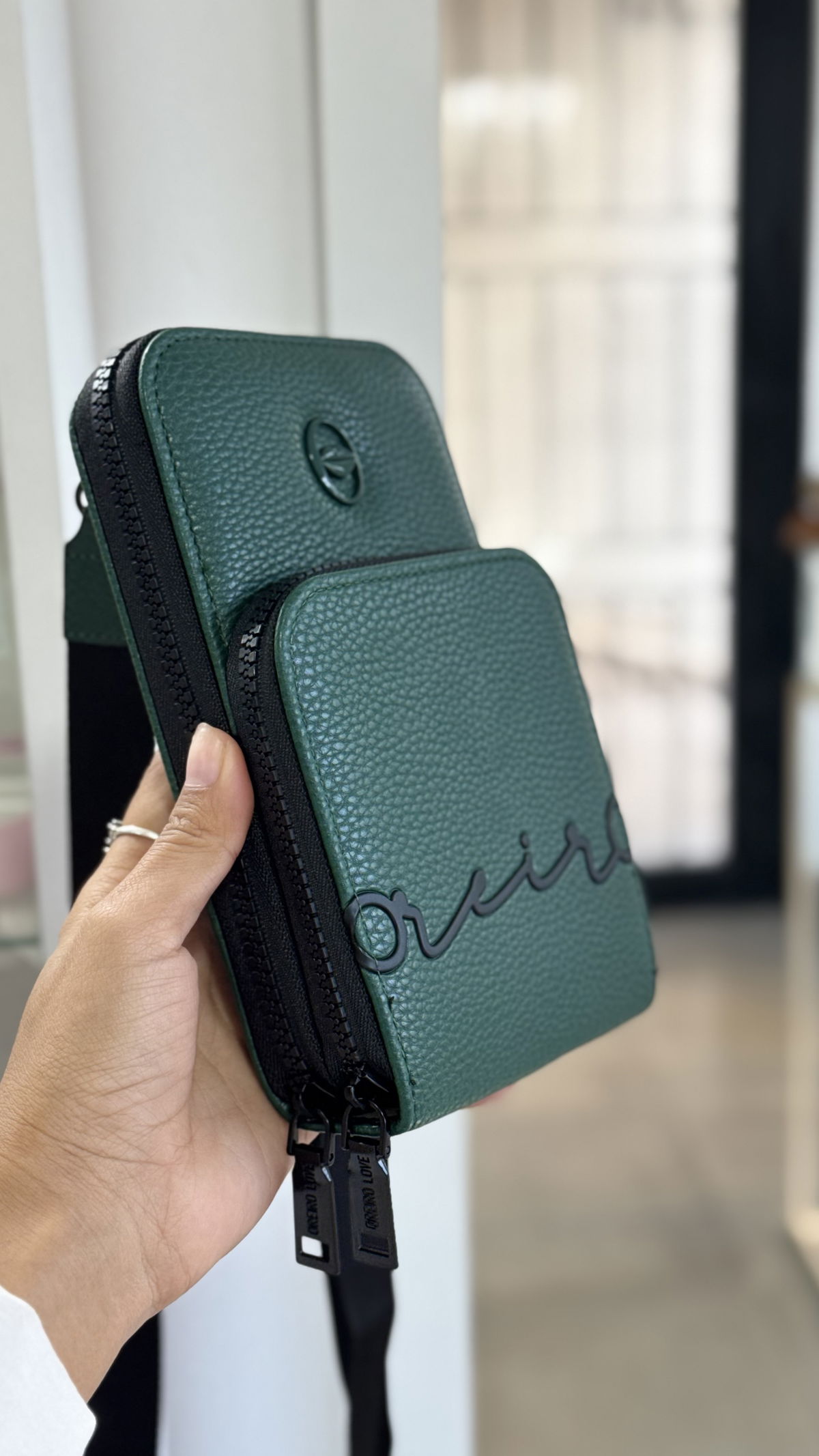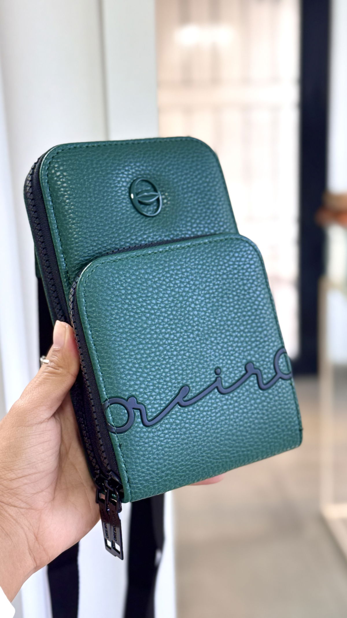 Portacelular , doble cierre, correa desmontable .Alto 18cm X Ancho 12cm X profundidad 2cm.