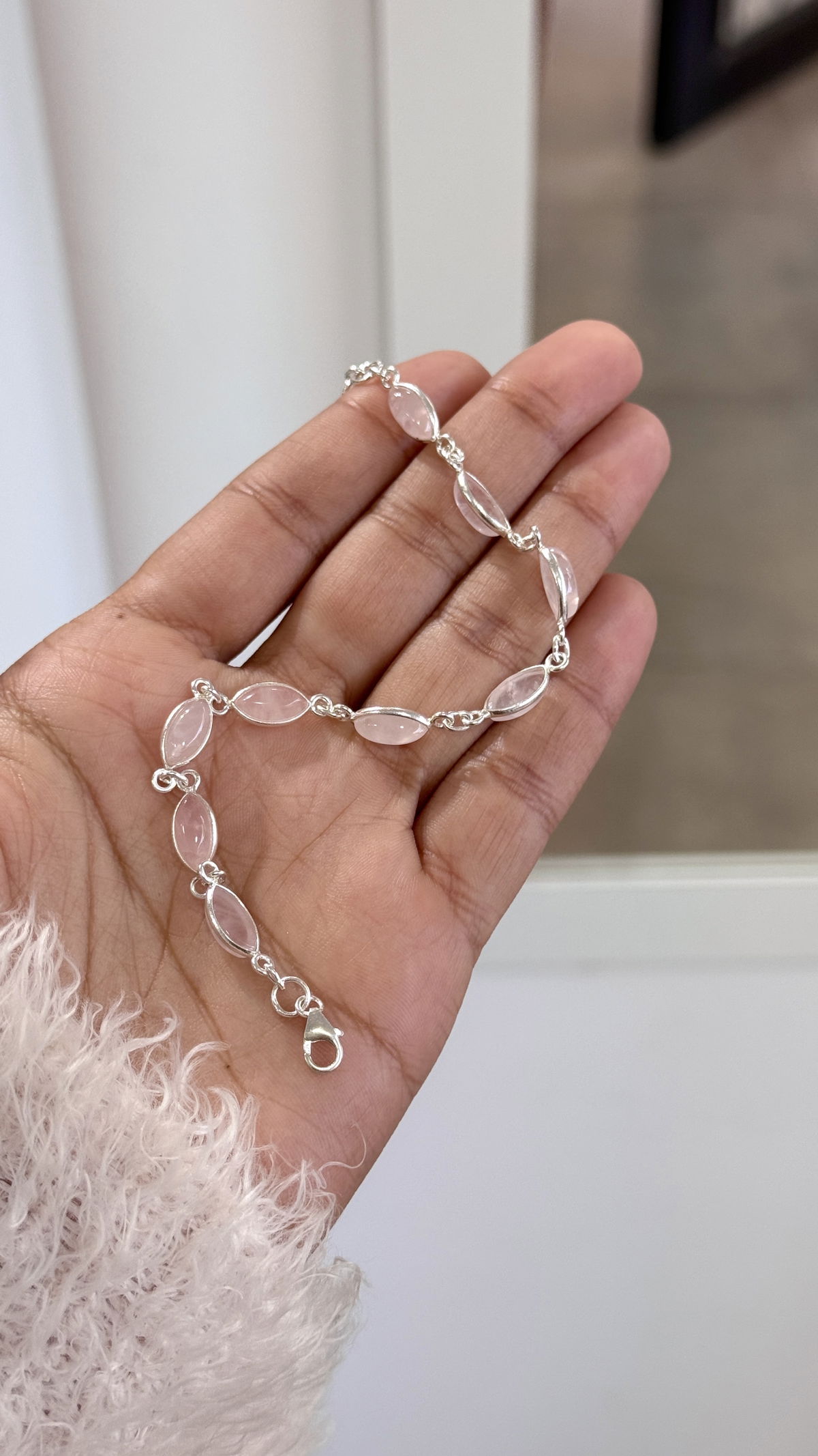 Pulsera óvalos piedra cuarzo natural plata925, 19,5cm.
