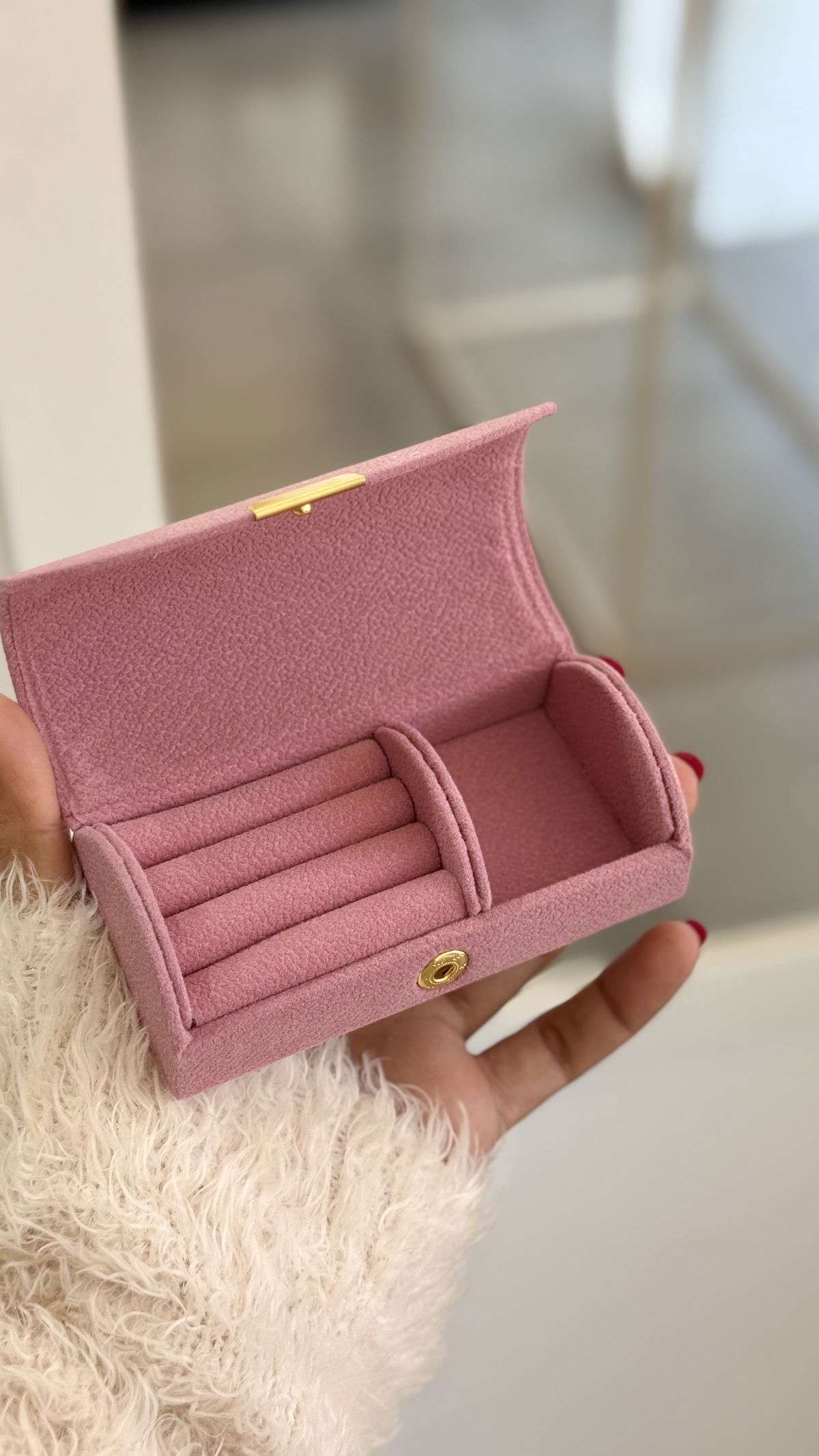 Alhajero pana espacio para anillos/aros/pulseras.
