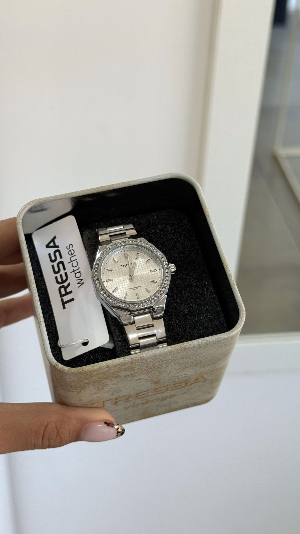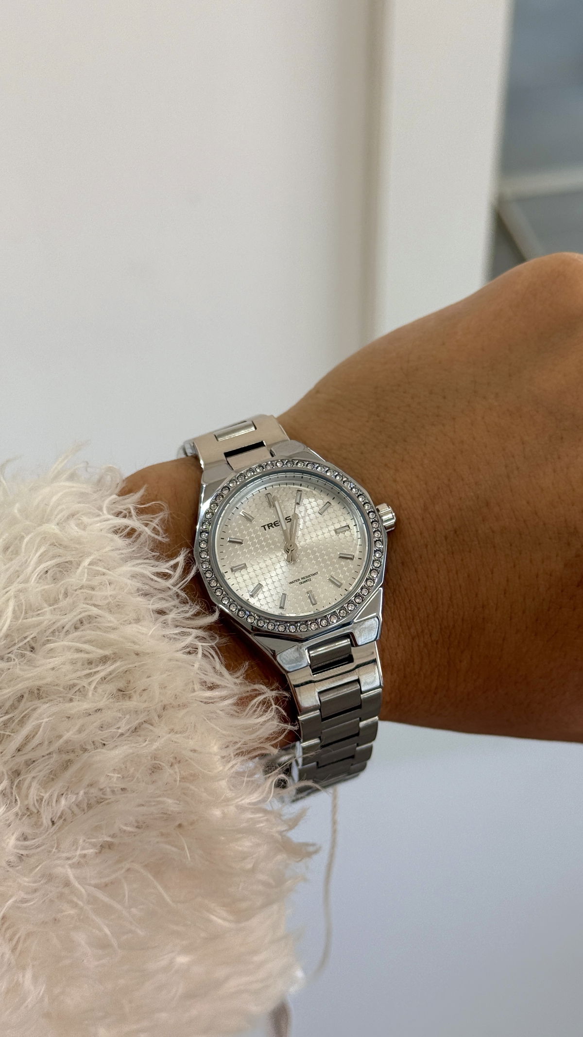 Reloj acero inoxidable con strass acero inoxidable, tressa, resistente al agua.