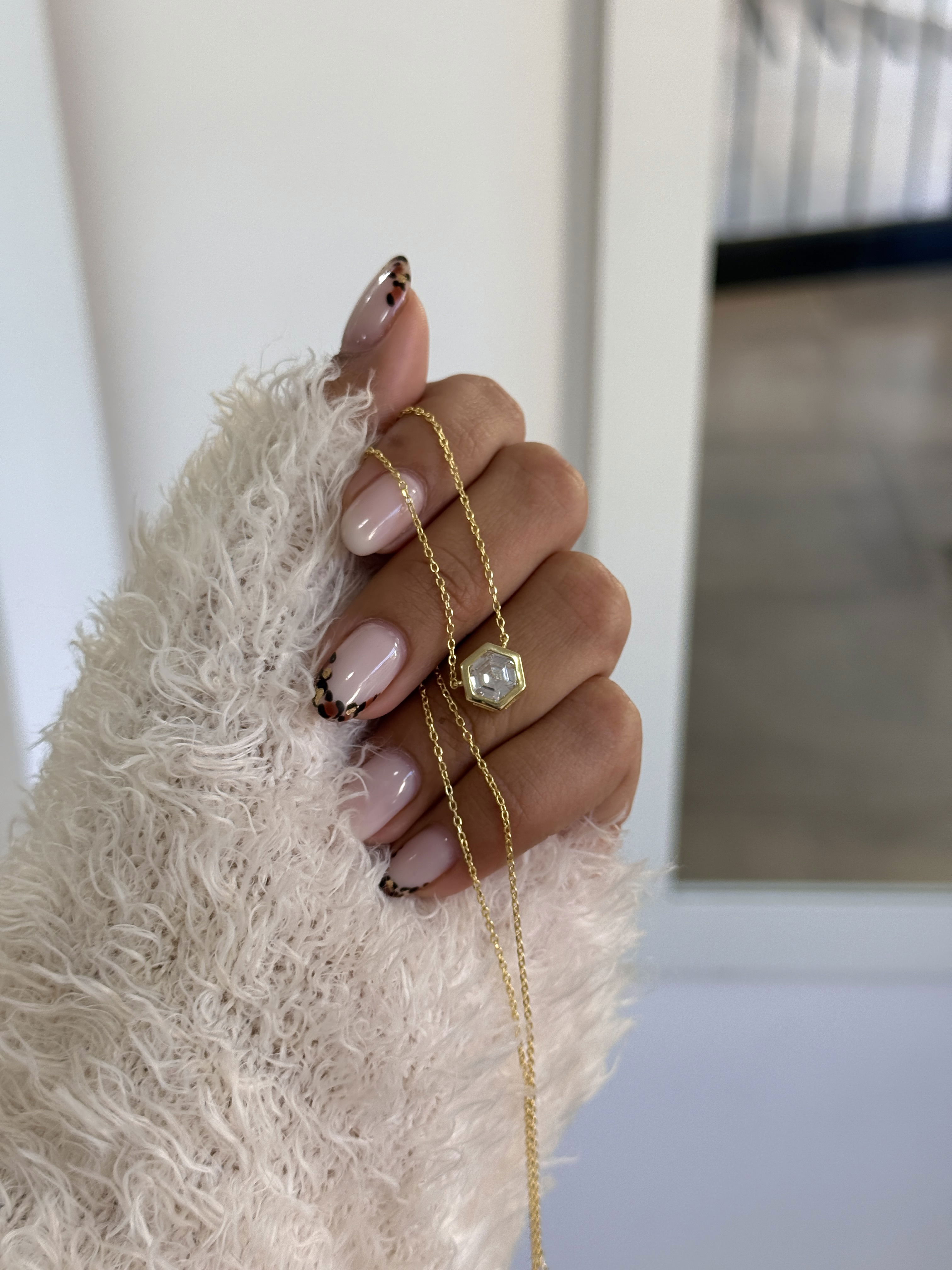 Collar con dije exagonal cúbics plata925 con baño de oro, 45cm.