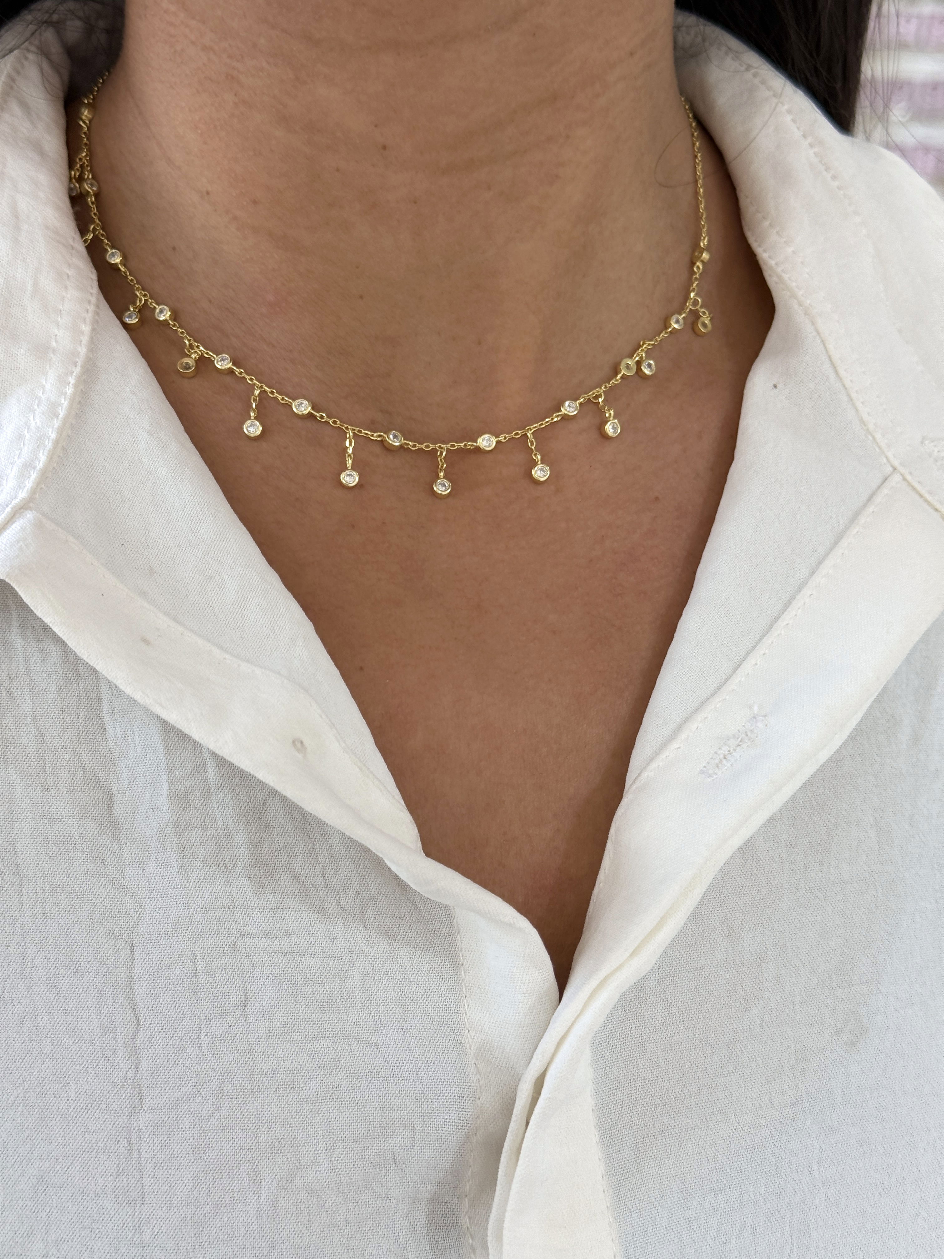 Collar susanitos cúbics colgantes plata925 con baño de oro 18k, 45cm.
