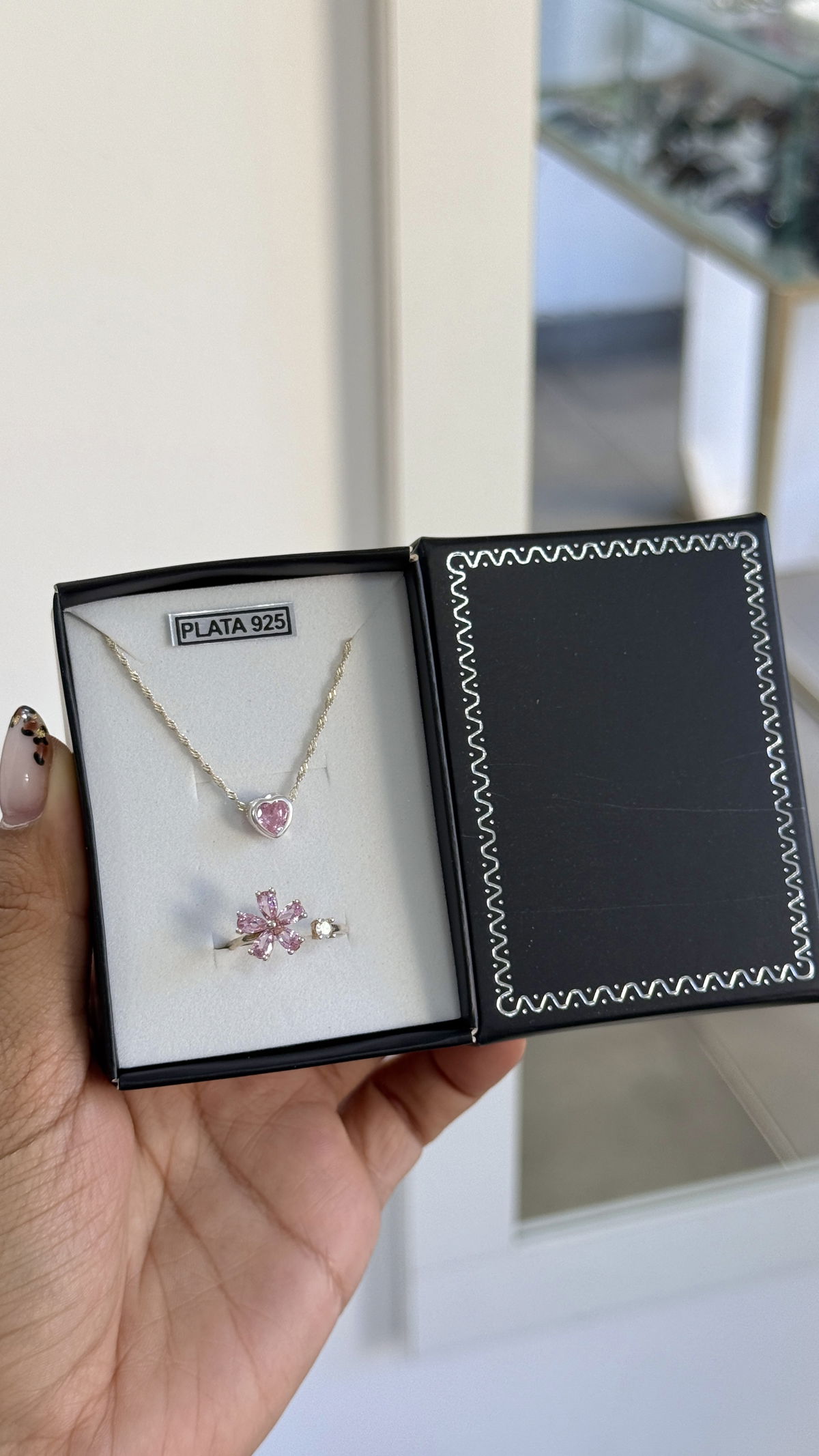 Set estuche con collar y anillo regulable plata925.