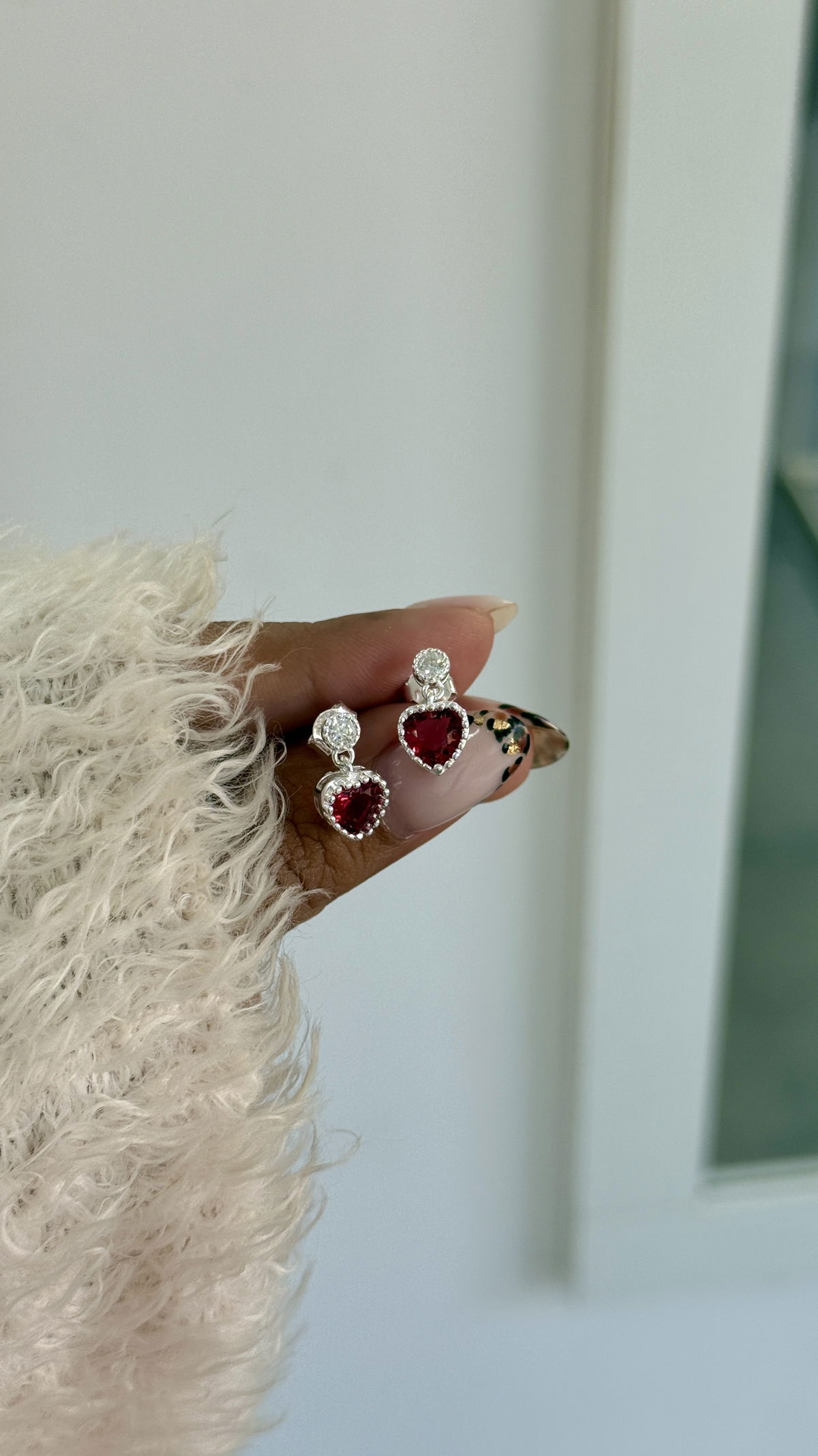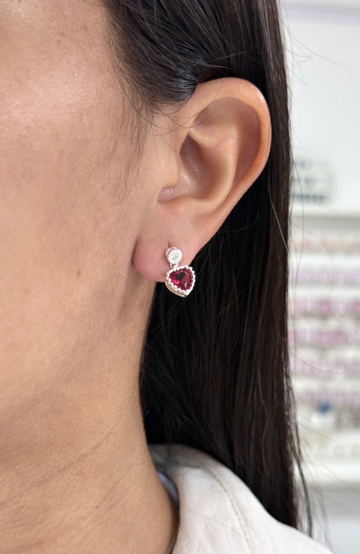 Aro pasante corazón rojo colgante plata925.