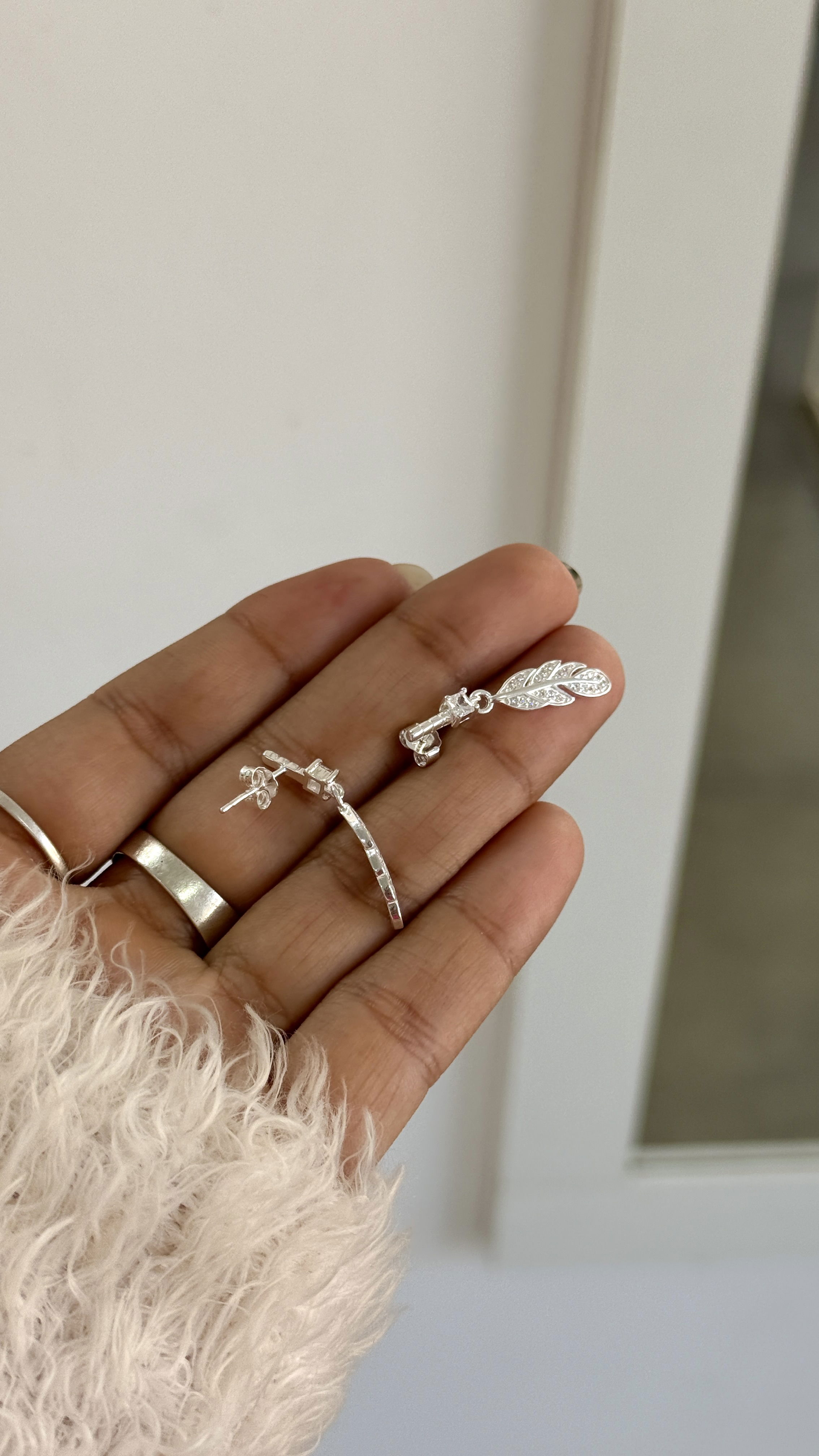Aro 3cm pasante hojitas con cúbics y micropave plata925,