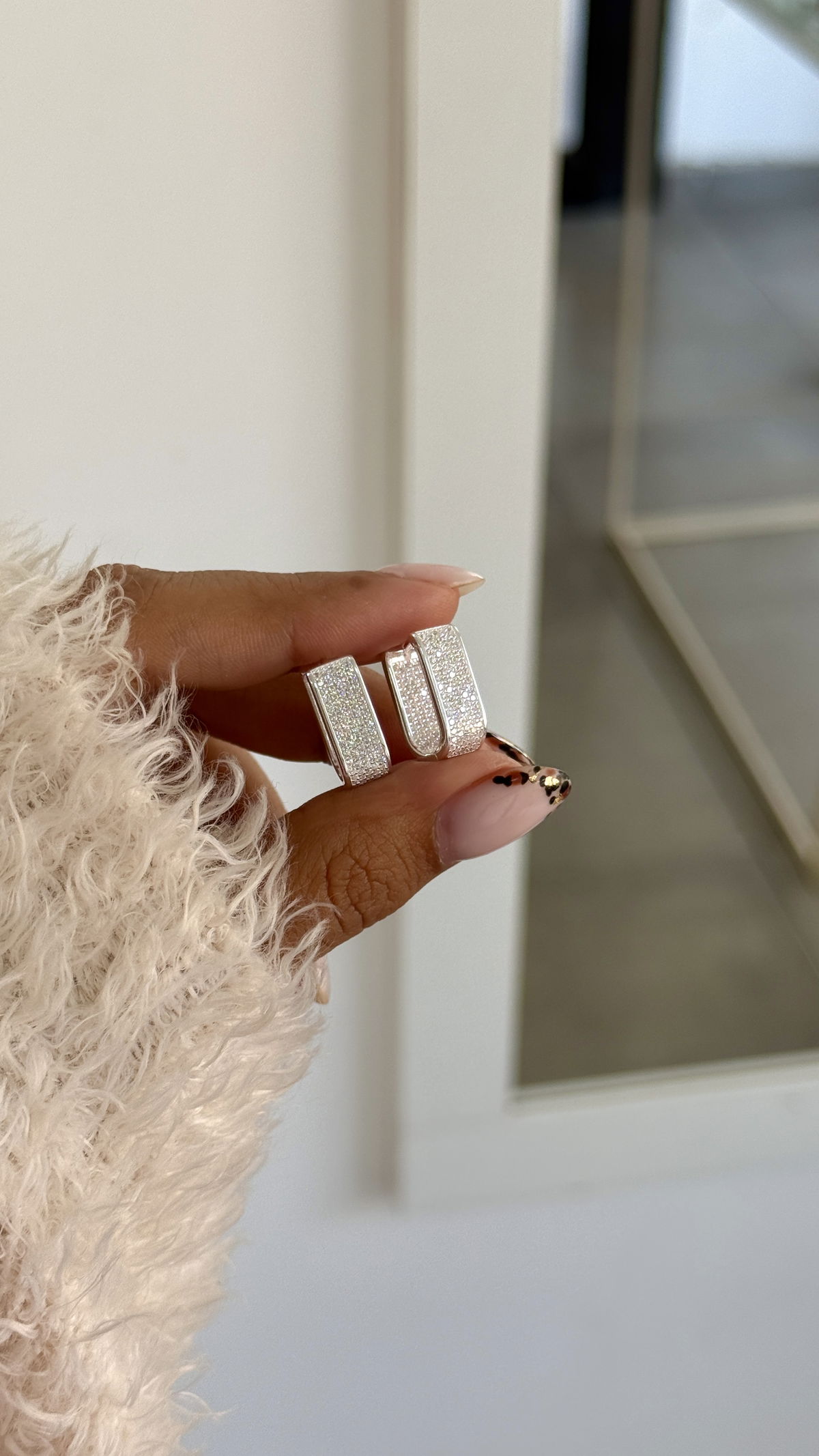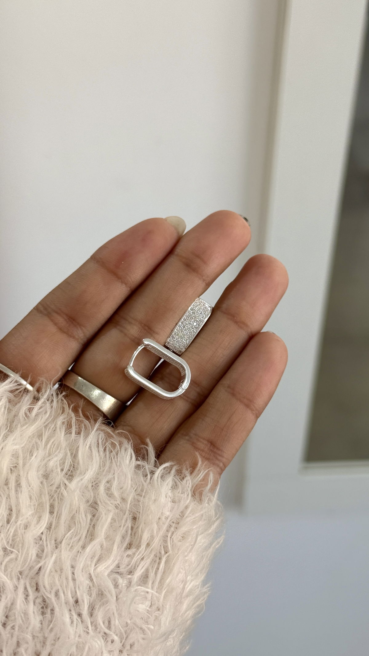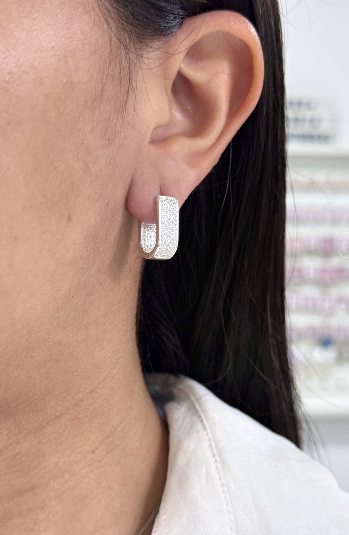 Argollas Huggies 2cm anchas cúbics y micropave en ambos lados plata925.